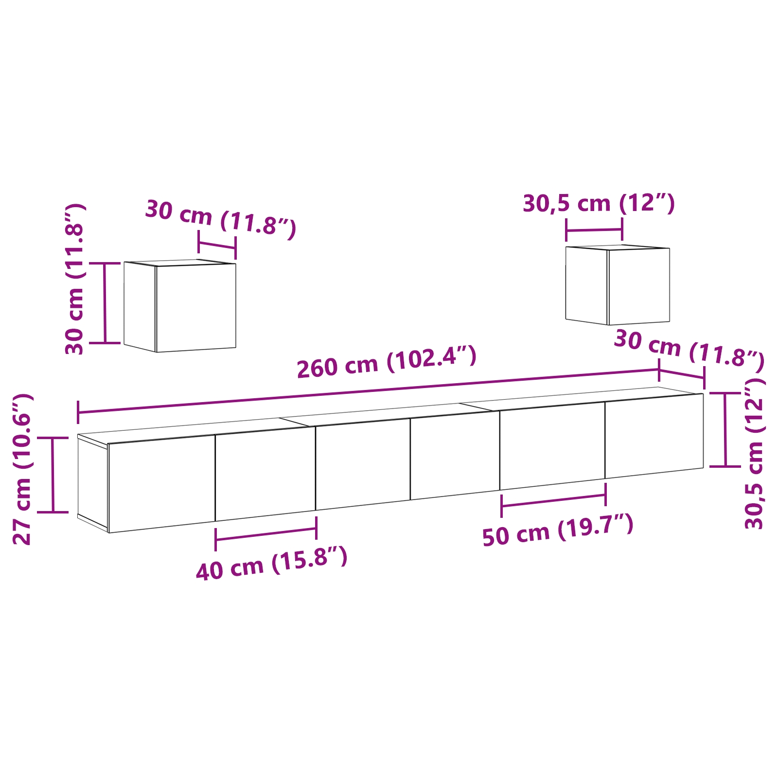 Îți prezentăm setul de dulapuri TV 7 Piese, cu un finisaj fain de Stejar Negru, perfect pentru a adăuga un stil modern în livingul tău.