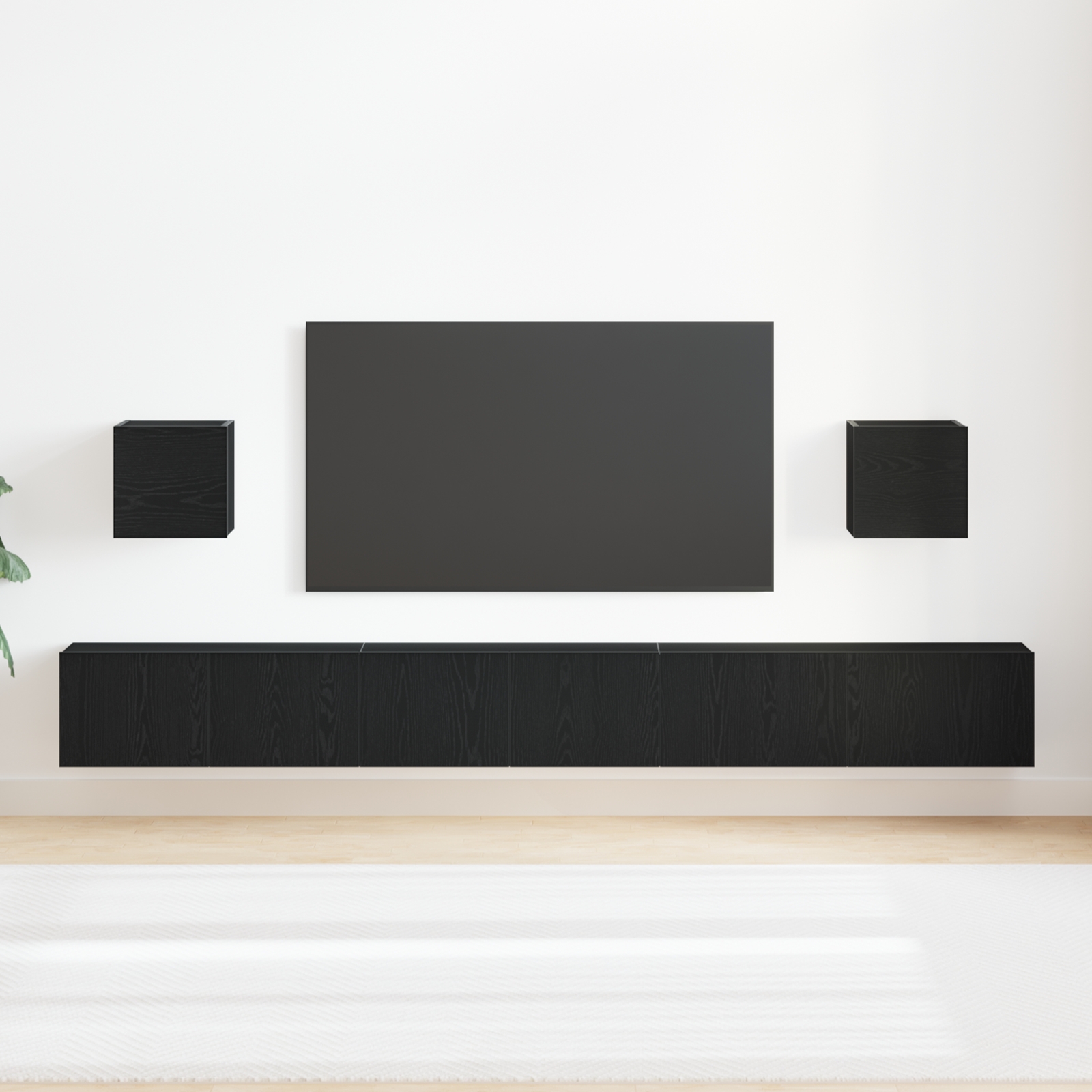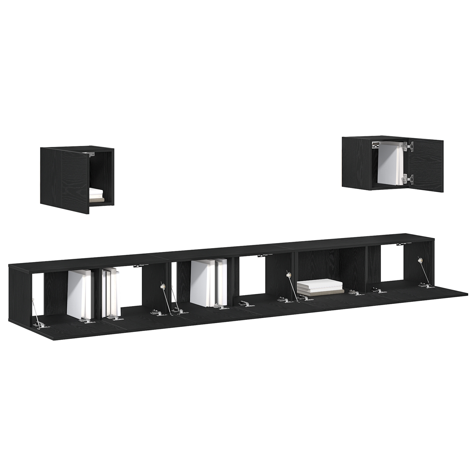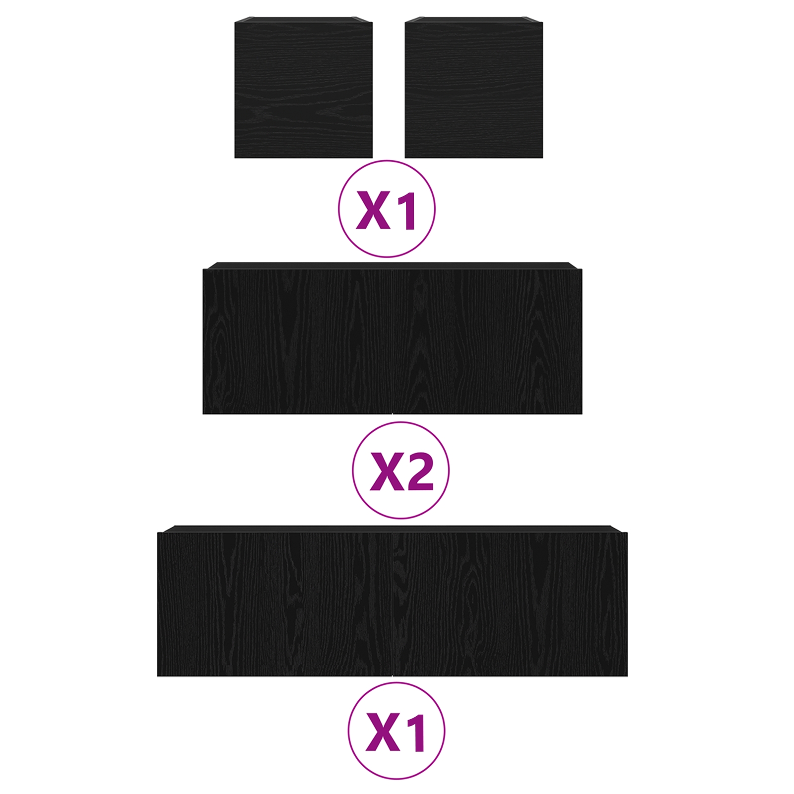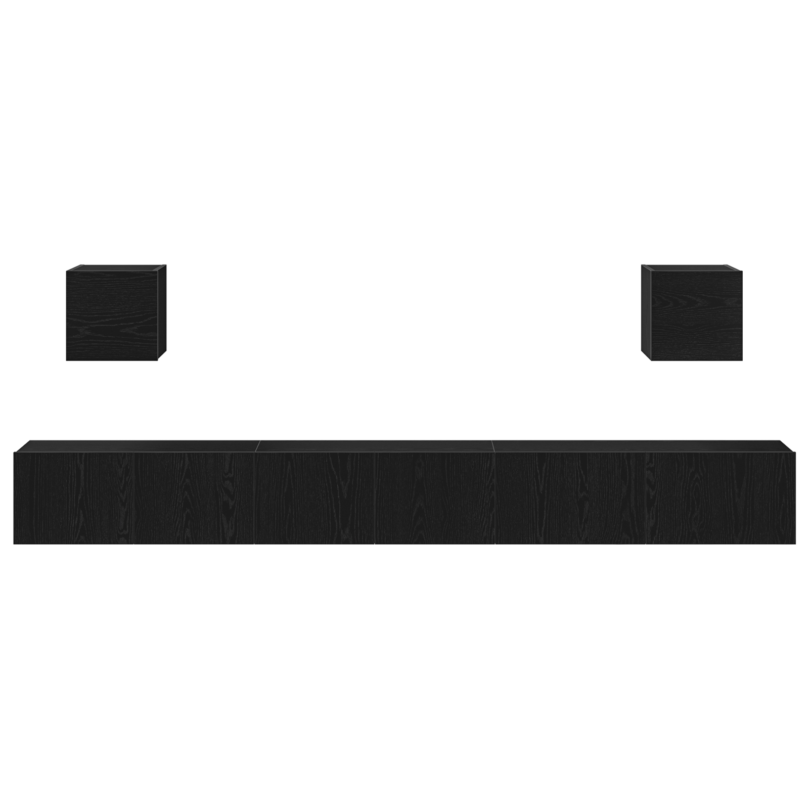 Set Dulap TV 7 Piese Stejar Negru Lemn Prelucrat