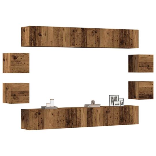 Set dulap TV 8 piese montat pe perete lemn vechi lemn prelucrat
