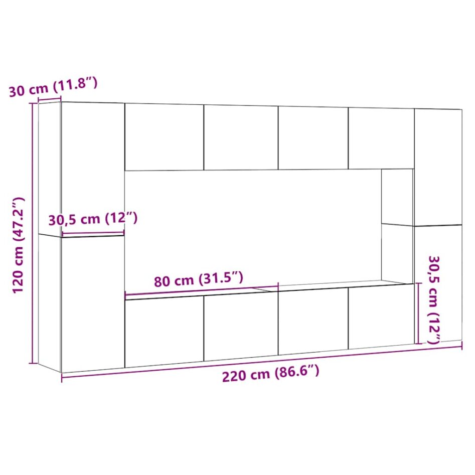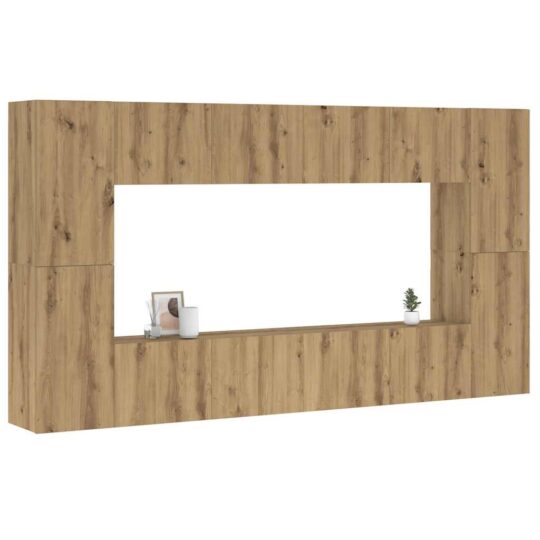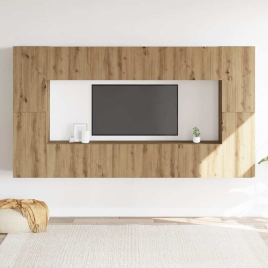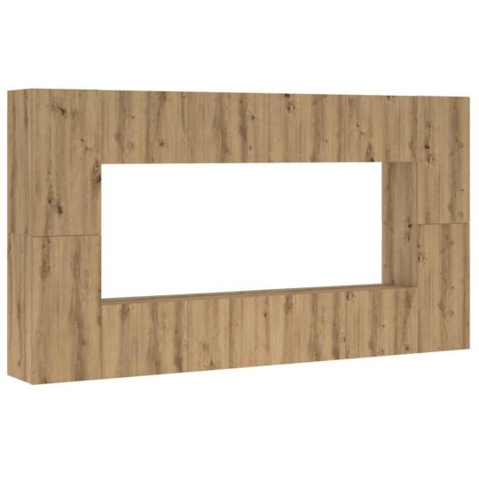Set dulap TV 8 piese montat pe perete Stejar artizanal