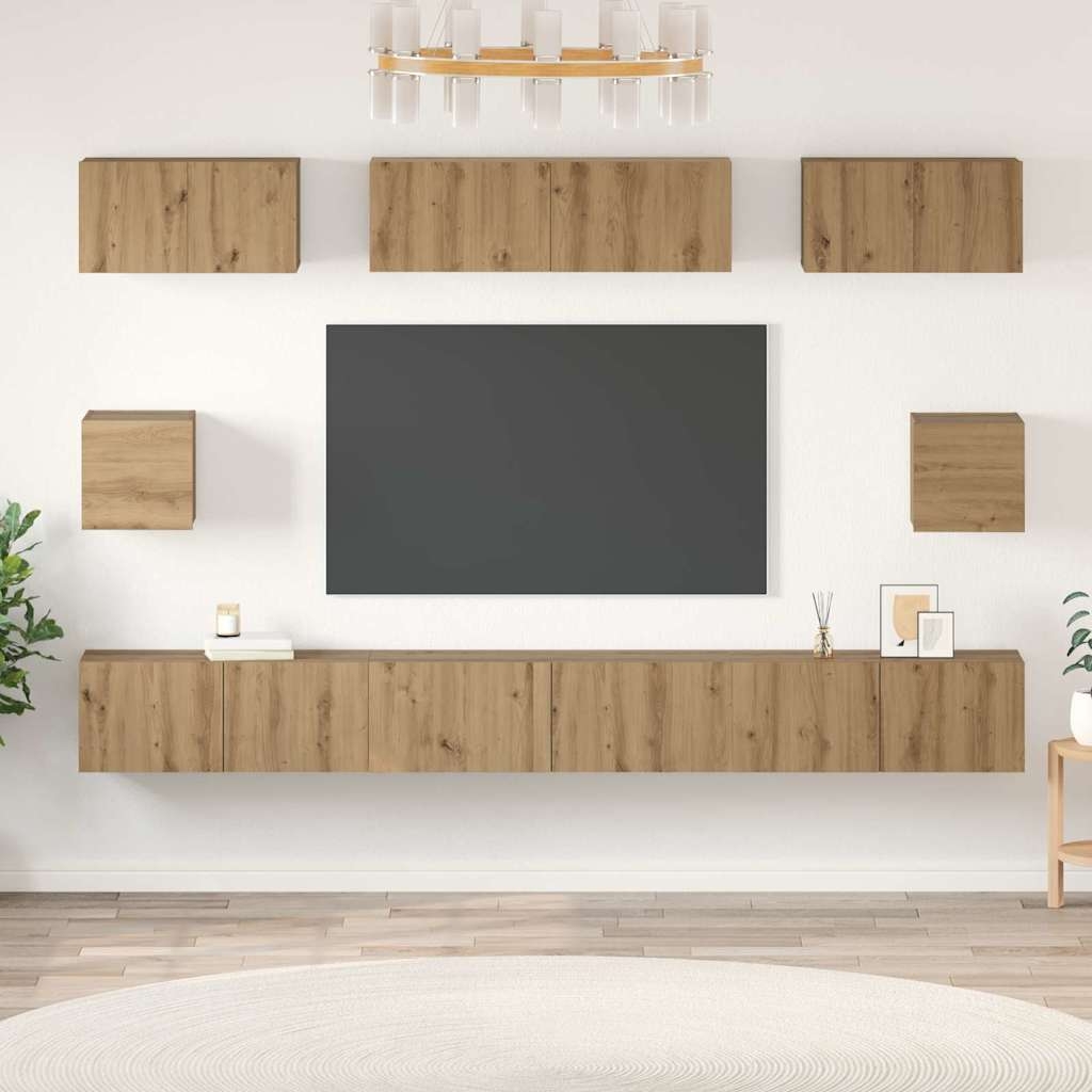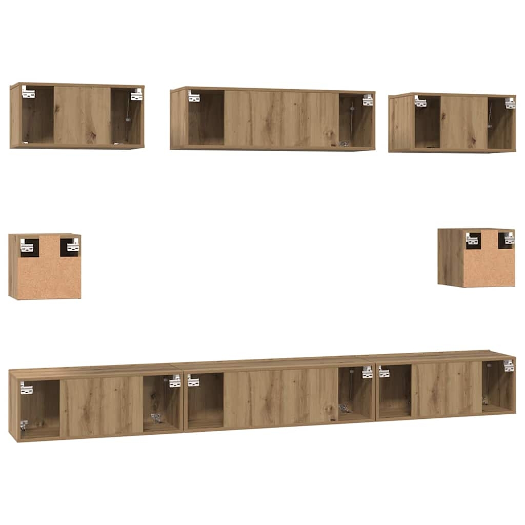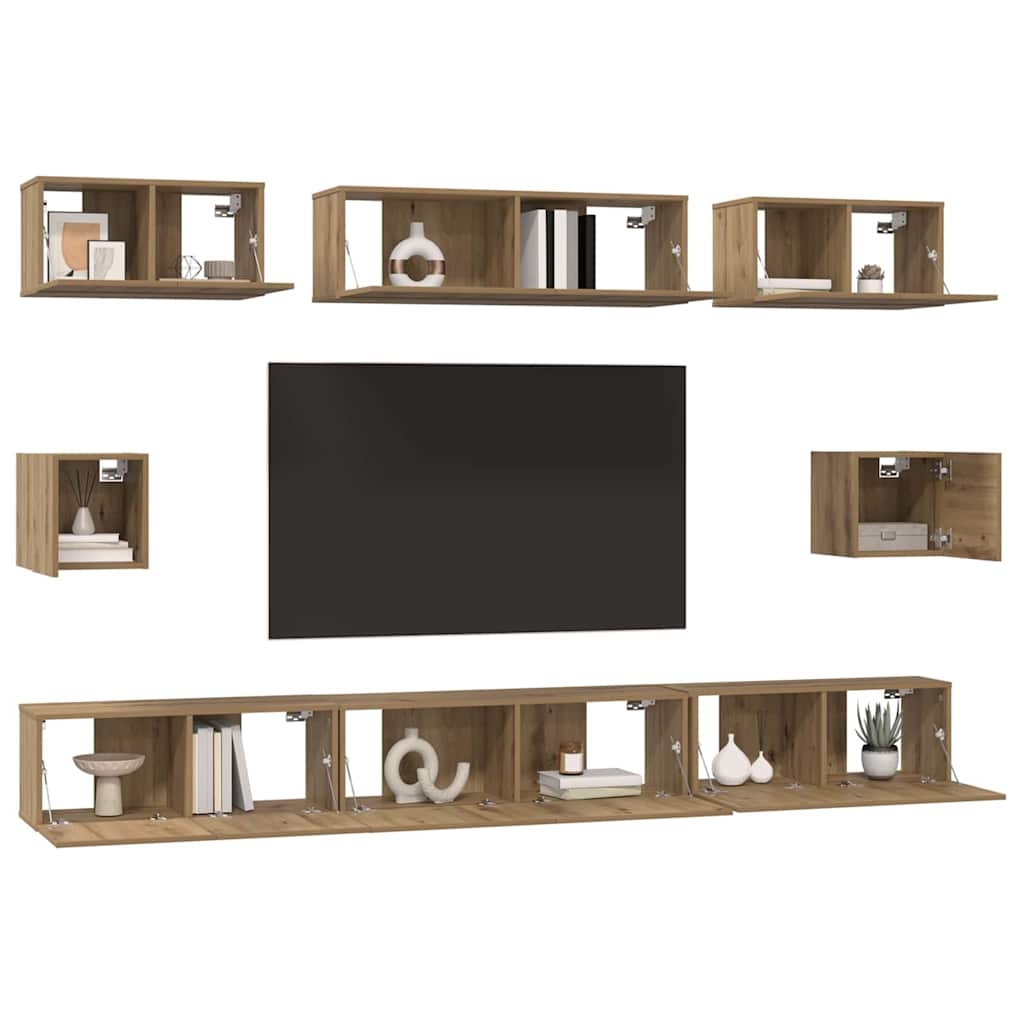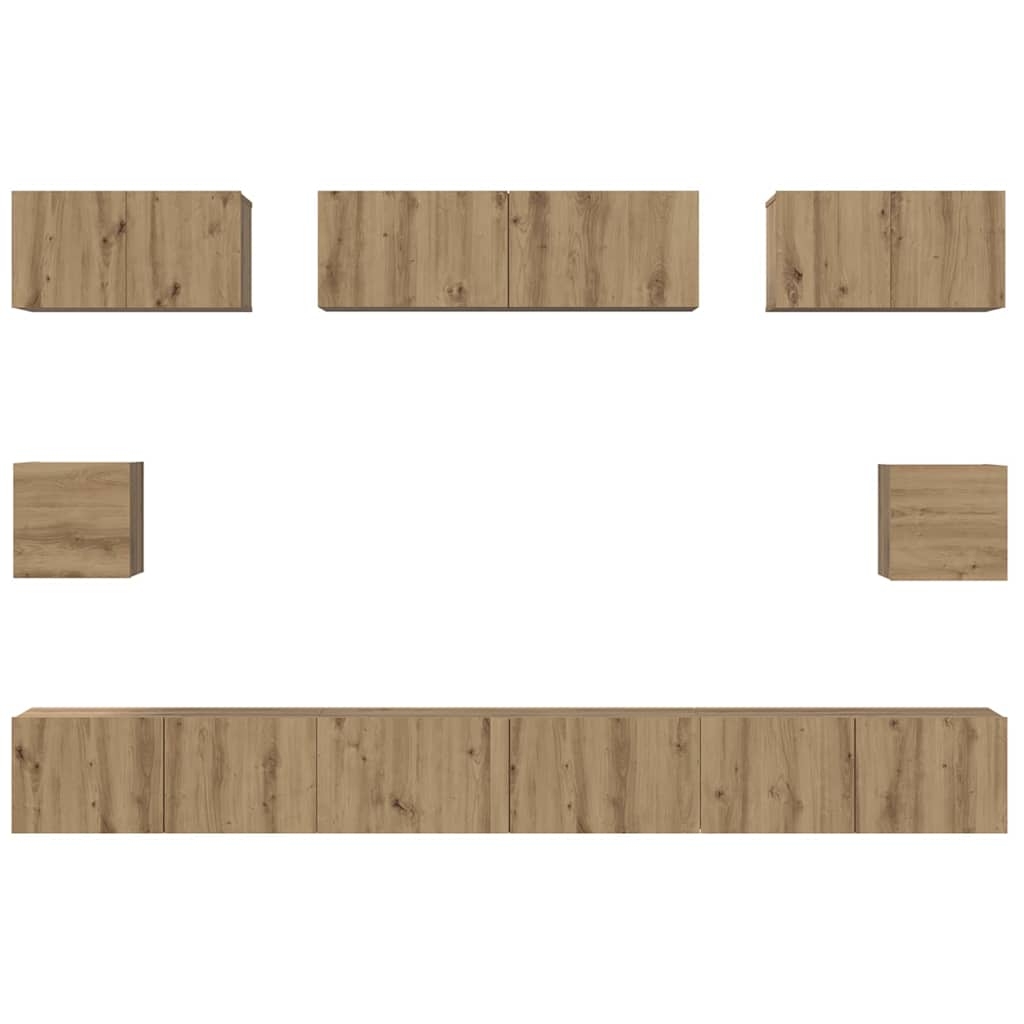 Set dulap TV Pe perete 8 pcs stejar artizanal Lemn compozit