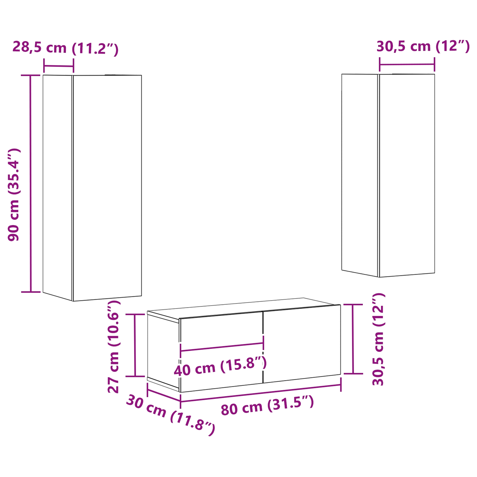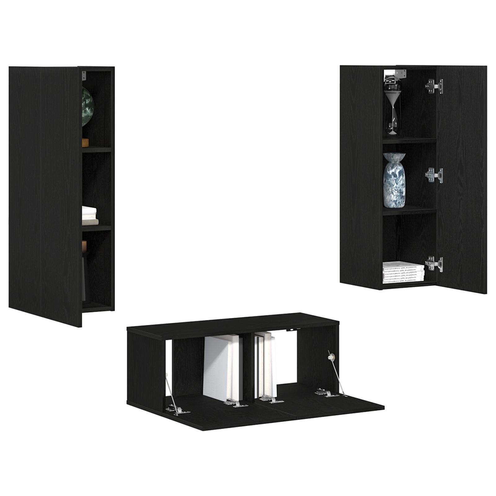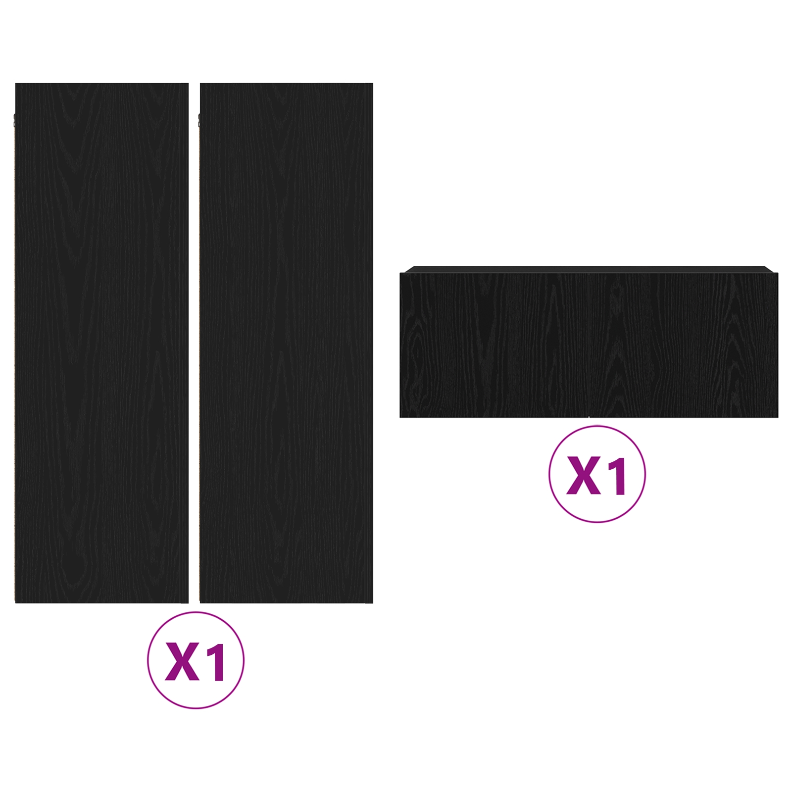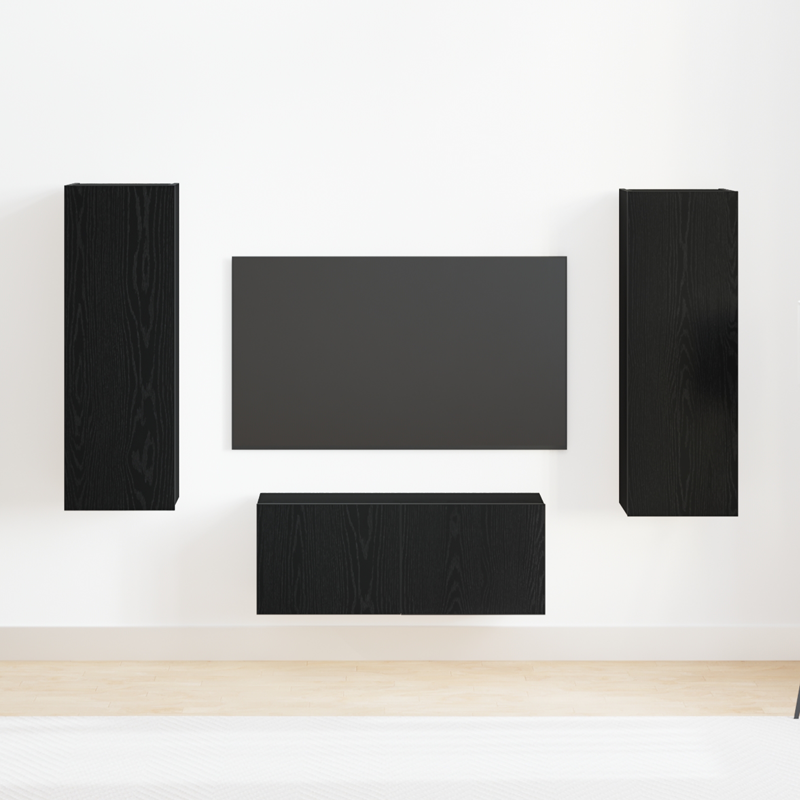Set dulap TV în 4 piese din lemn prelucrat stejar negru