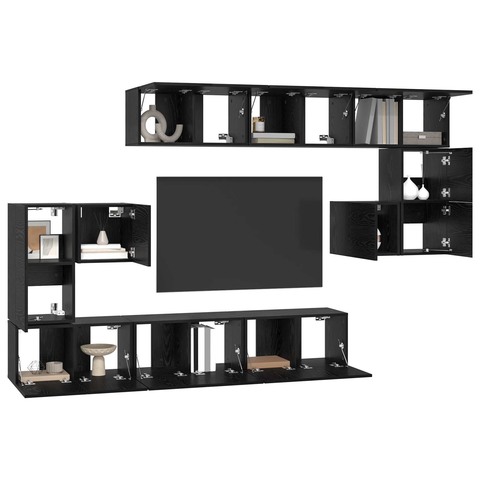 Set comodă TV 10 pcs Stejar negru 60 x 30 x 30 cm Lemn compozit