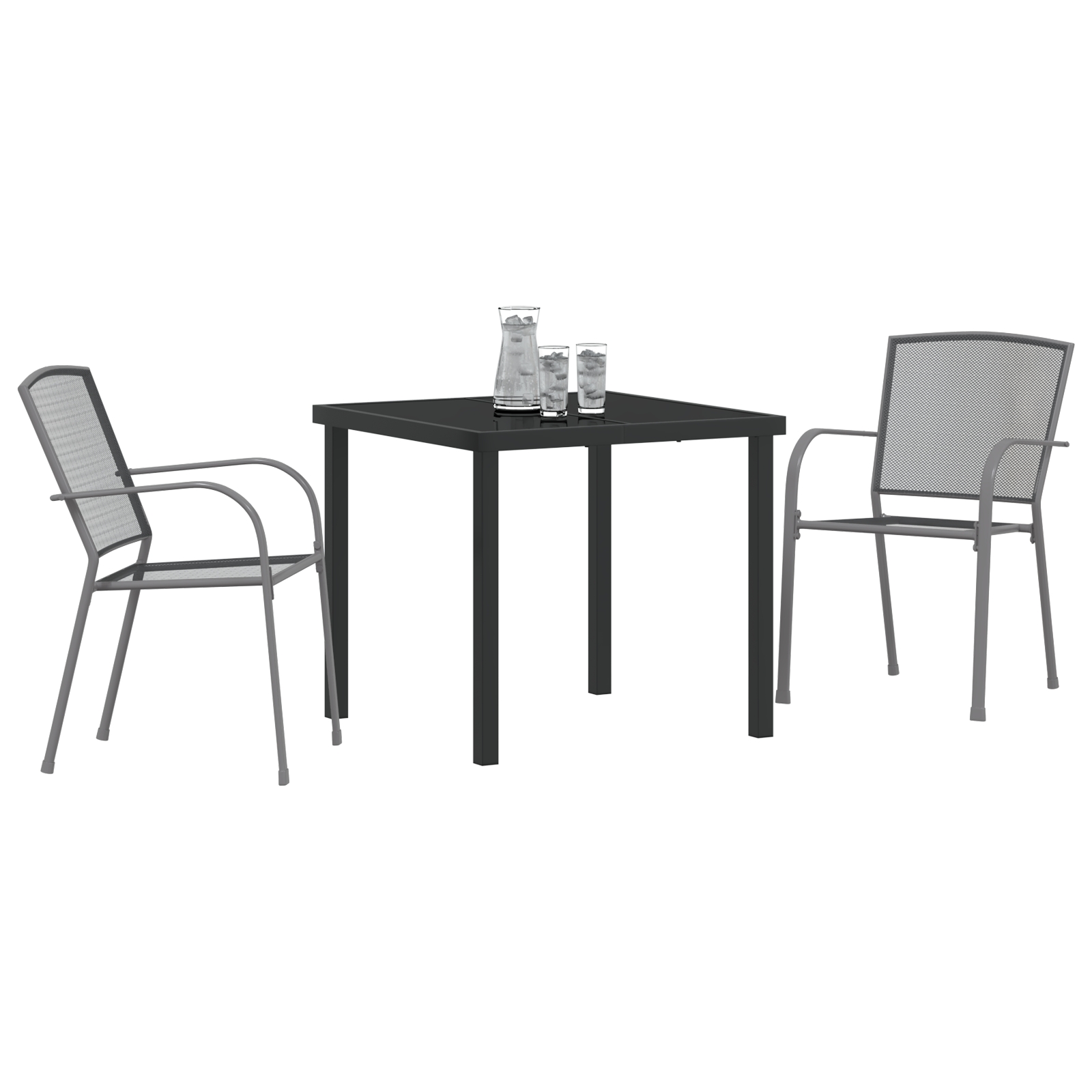 • Materiale Premium: Construit din oțel vopsit electrostatic, Setul de Masă pentru Grădină este conceput pentru a oferi durabilitate de lungă durată. Cu capabilități rezistente la UV, această structură robustă este construită să facă față elementelor exterioare, păstrându-și aspectul elegant. Suprafața din sticlă securizată adaugă un strop de eleganță, oferind o suprafață de dining fiabilă și atrăgătoare.