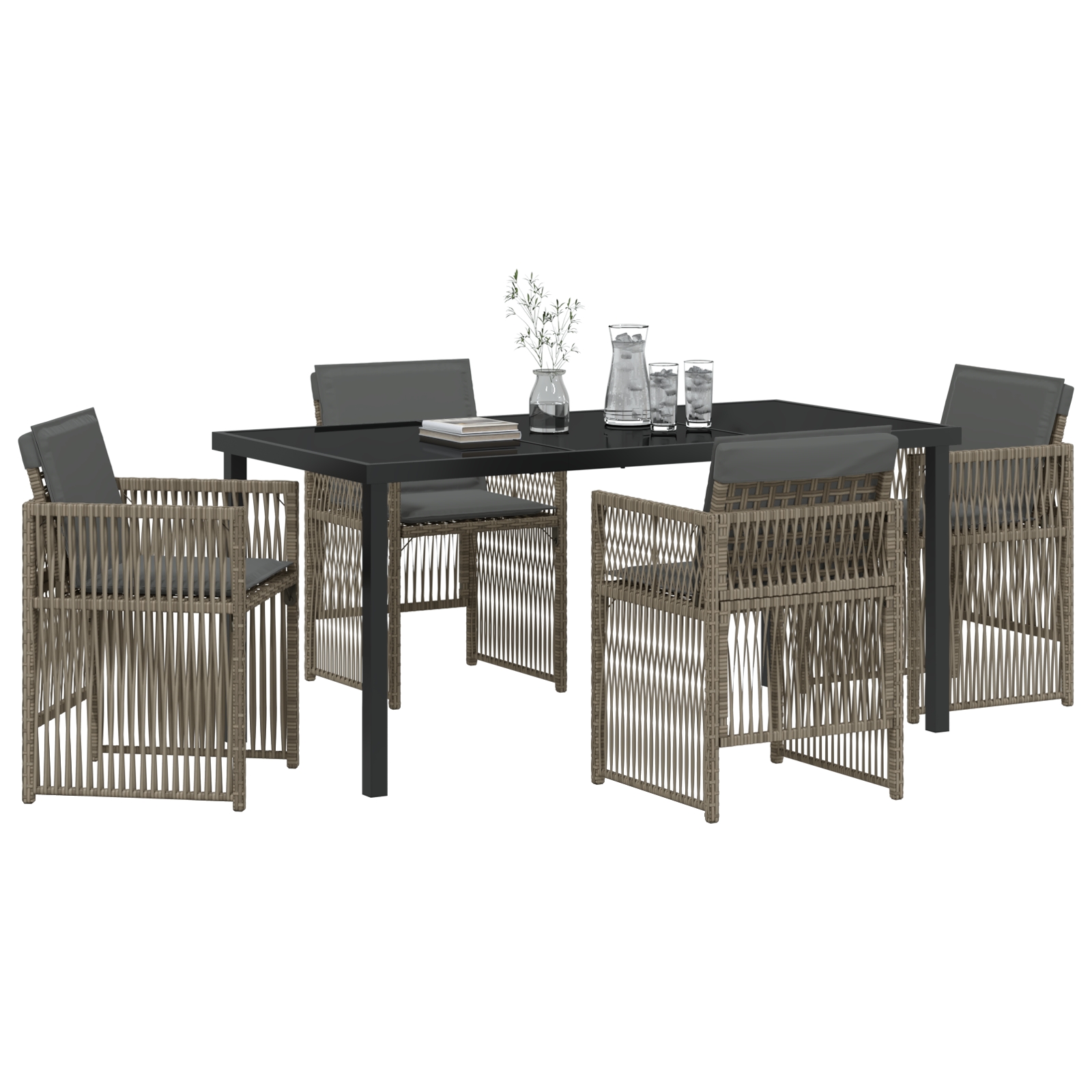Setul ăsta modern de dining pentru grădină cu perne e o piesă elegantă și flexibilă pentru spațiul tău exterior. Are un design simplu, dar funcțional, cu linii elegante care se potrivesc perfect cu orice grădină sau patio. Indiferent dacă iei cina cu prietenii afară sau te bucuri de un mic dejun însorit, acest set face ca spațiul tău exterior să fie mai primitor și confortabil cu masa sa din poliratan și sticlă securizată.