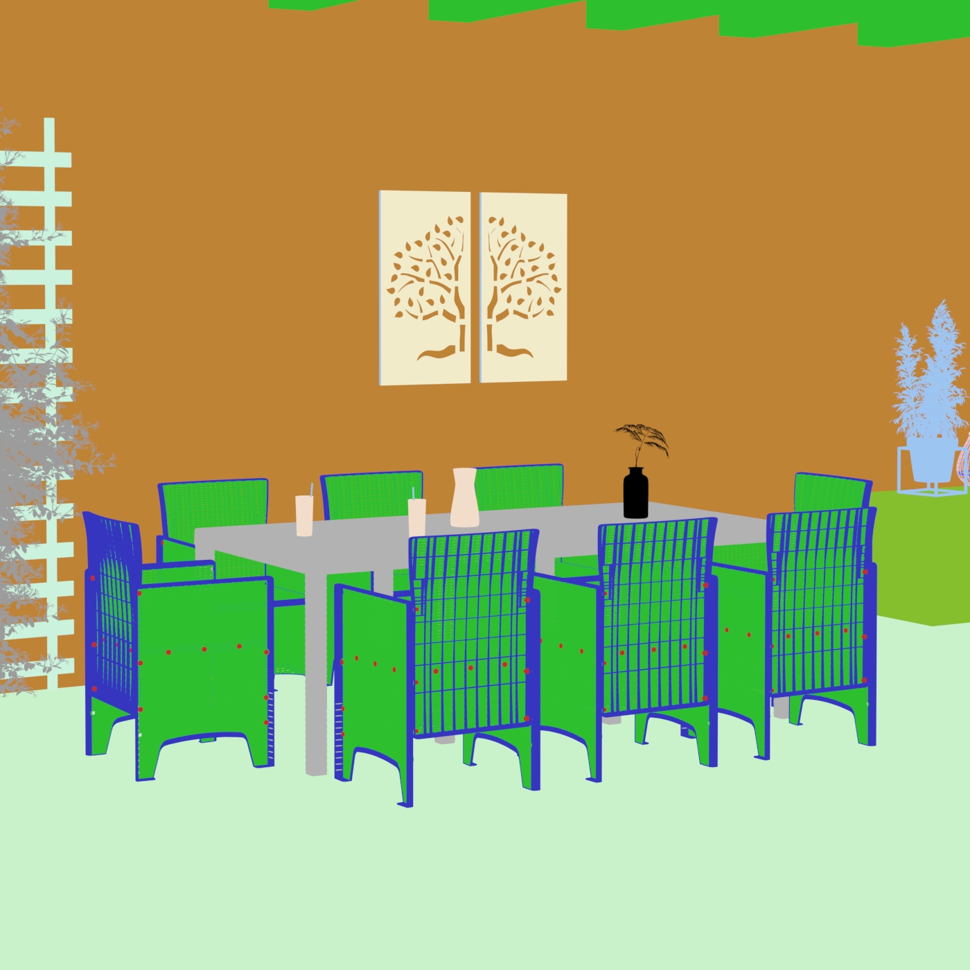 Setul ăsta modern de dining pentru grădină e aici să aducă eleganță și utilitate în exteriorul tău. Cu un design super elegant și linii curate, se potrivește perfect în orice terasă. E locul ideal pentru mesele alfresco, să te bucuri de momente frumoase cu familia și prietenii sub cerul înstelat. Transformă orice spațiu exterior într-un loc classy pentru adunări de neuitat.