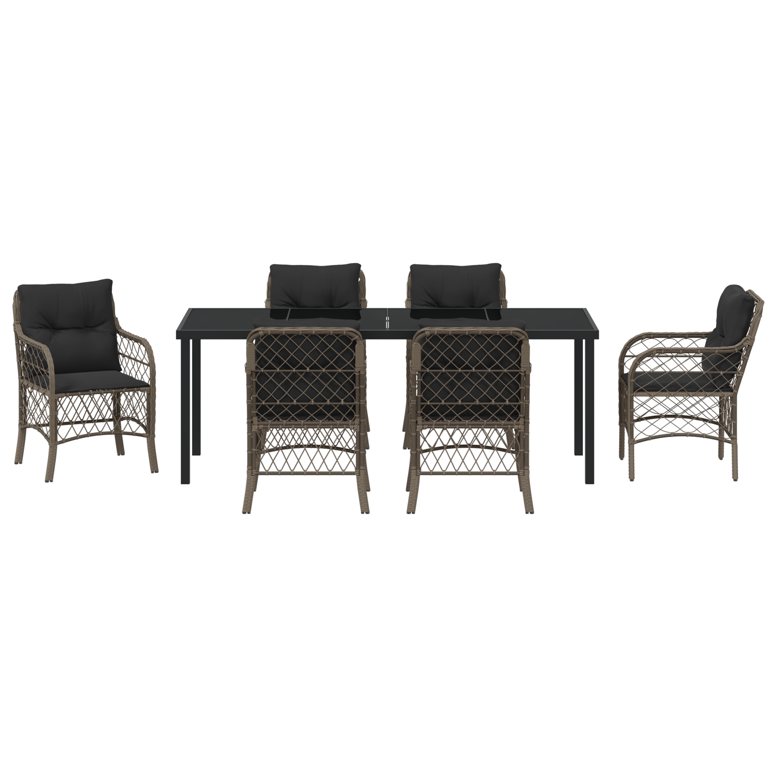 Setul de masă pentru grădină are un design modern și elegant, din poli ratan gri care se potrivește perfect în orice spațiu exterior. E ideal pentru terase, balcoane sau grădini, și cu scaune comfortabile cu perne moi, e un loc grozav atât pentru mese cât și pentru relaxare.