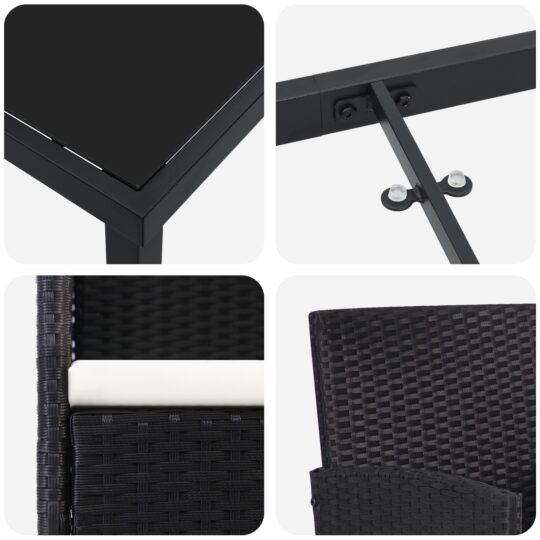 Fii primul care scrii o recenzie pentru „Set de masă pentru grădină cu pernă 5 pcs Negru Rattan poli”