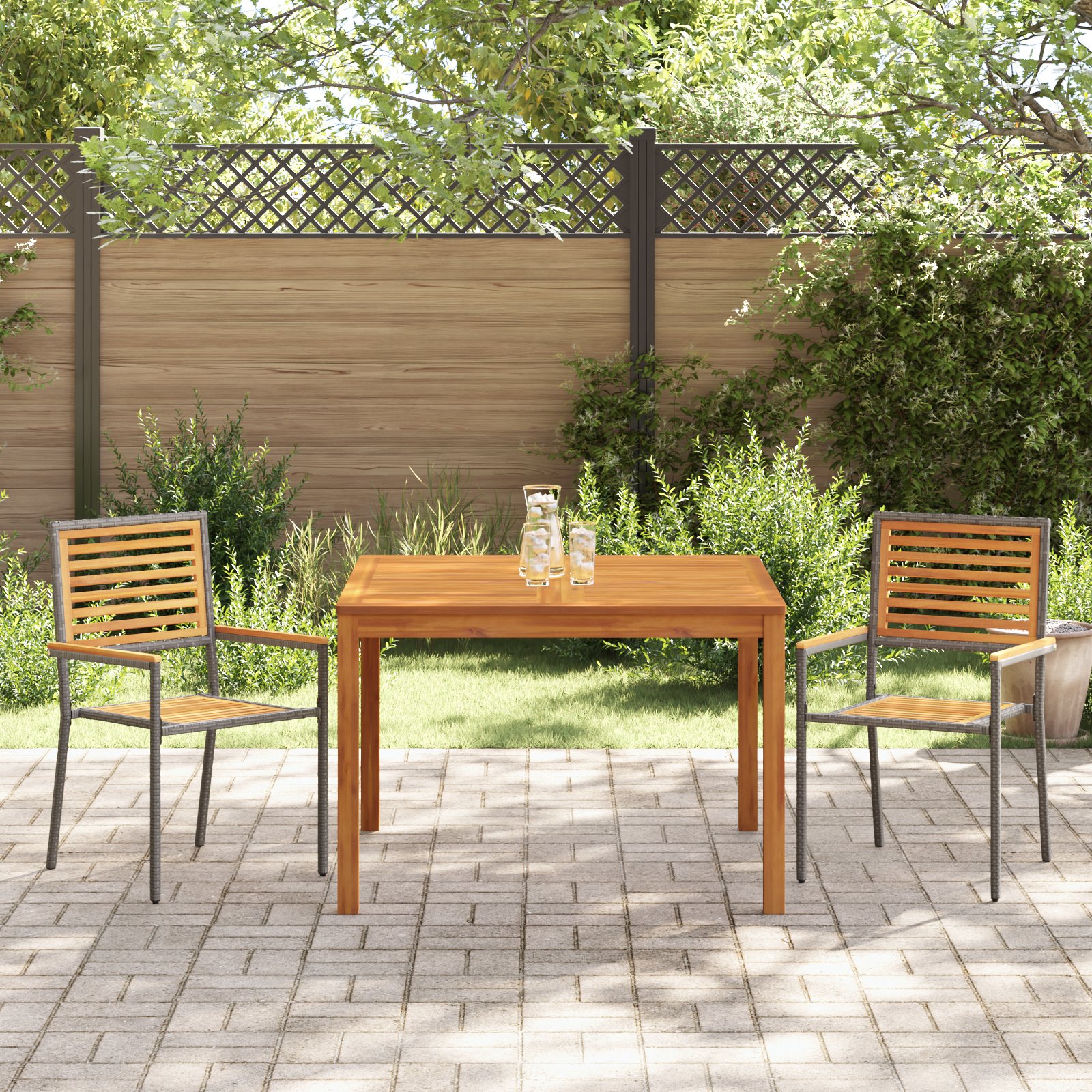 - Componente Funcționale Setul include o masă rectangulară, scaune cu șezuturi și spătare din lemn solid de acacia și brațe din poliratan, fiecare lucrat cu atenție la detalii. Aceste componente de înaltă calitate oferă confort și durabilitate, făcând din experiența de a mânca sau de a te relaxa afară una plăcută.