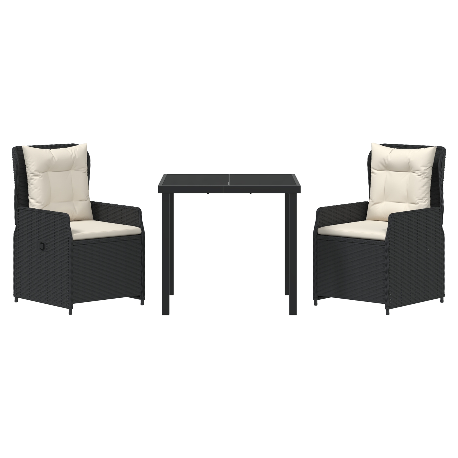 Set de masă pentru grădină 3 pcs Negru poliratan