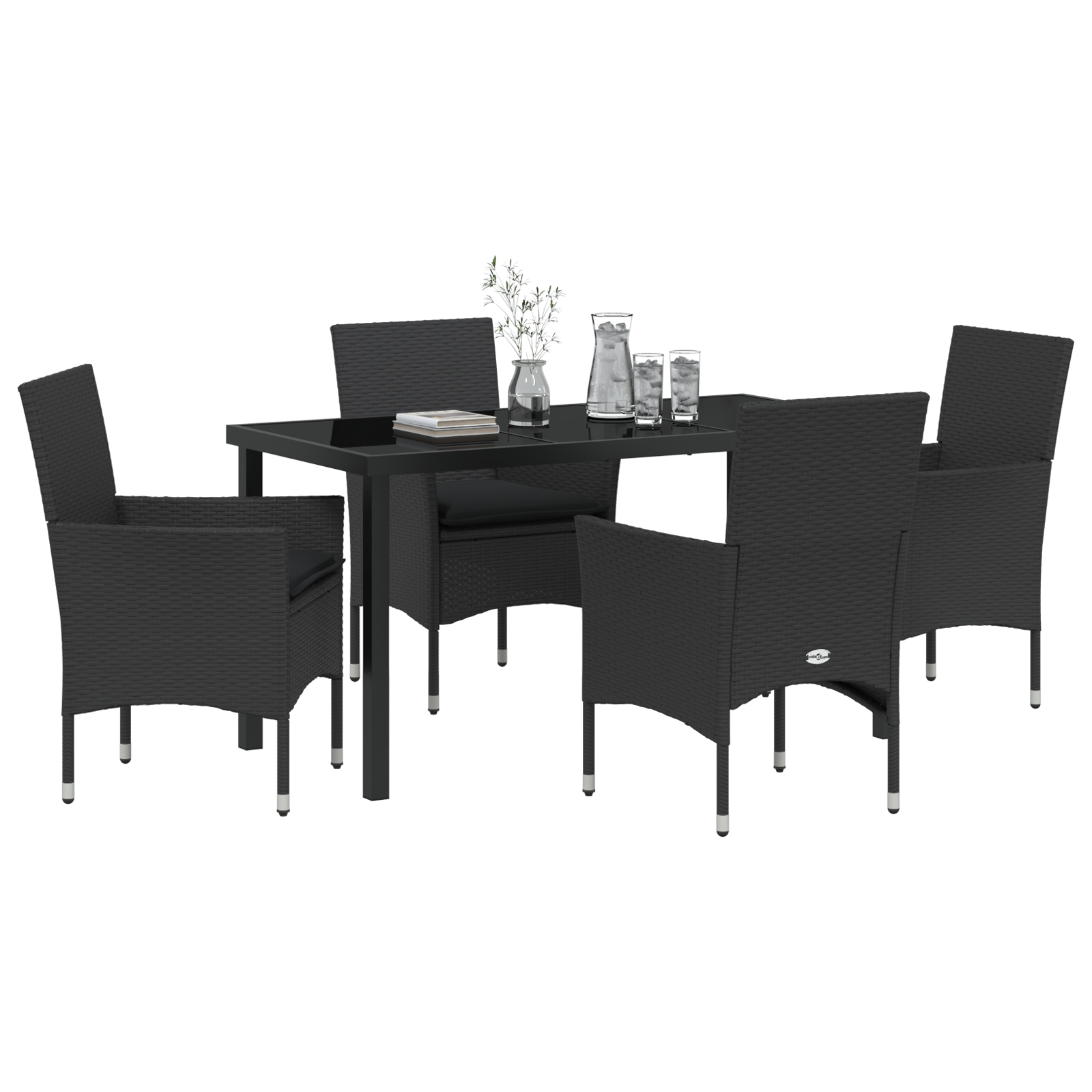 Set de masă pentru grădină cu pernă 5 pcs Negru Rattan poli