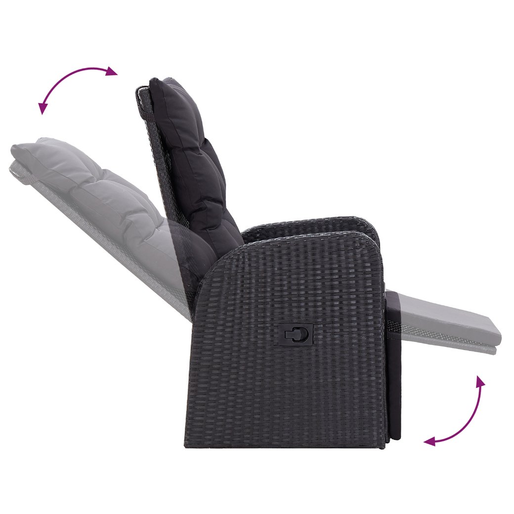 Set mese grădină 5 piese cu perne, ratan polimer negru și acacia