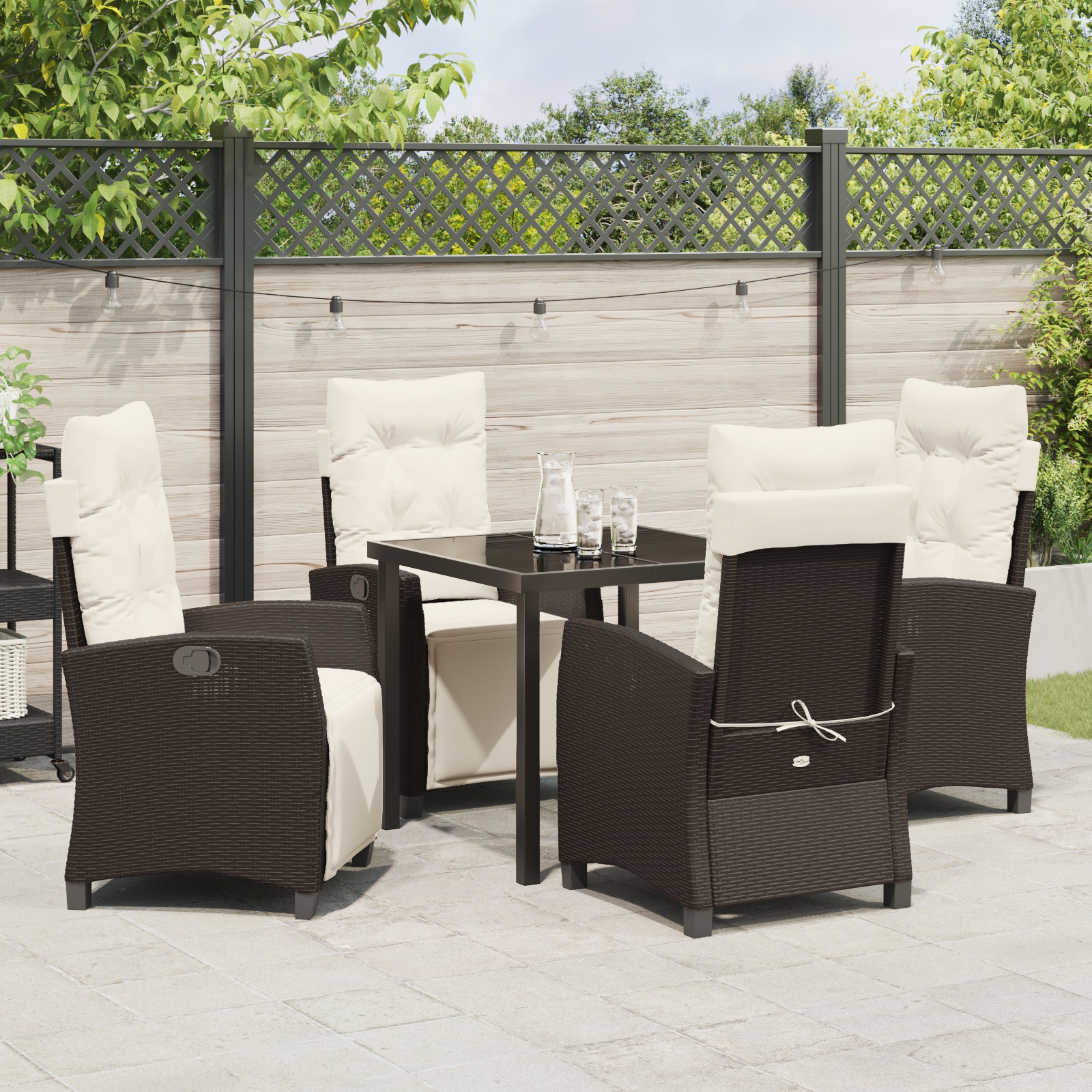 - Funcții cool: Scaunele reclinabile au spătare reglabile care îți permit să găsești nivelul perfect de confort, așa că poți să te relaxezi sau să te bucuri de mese sociale cum îți place. Flexibilitatea asta e perfectă pentru leneveală sau mese cu prietenii.