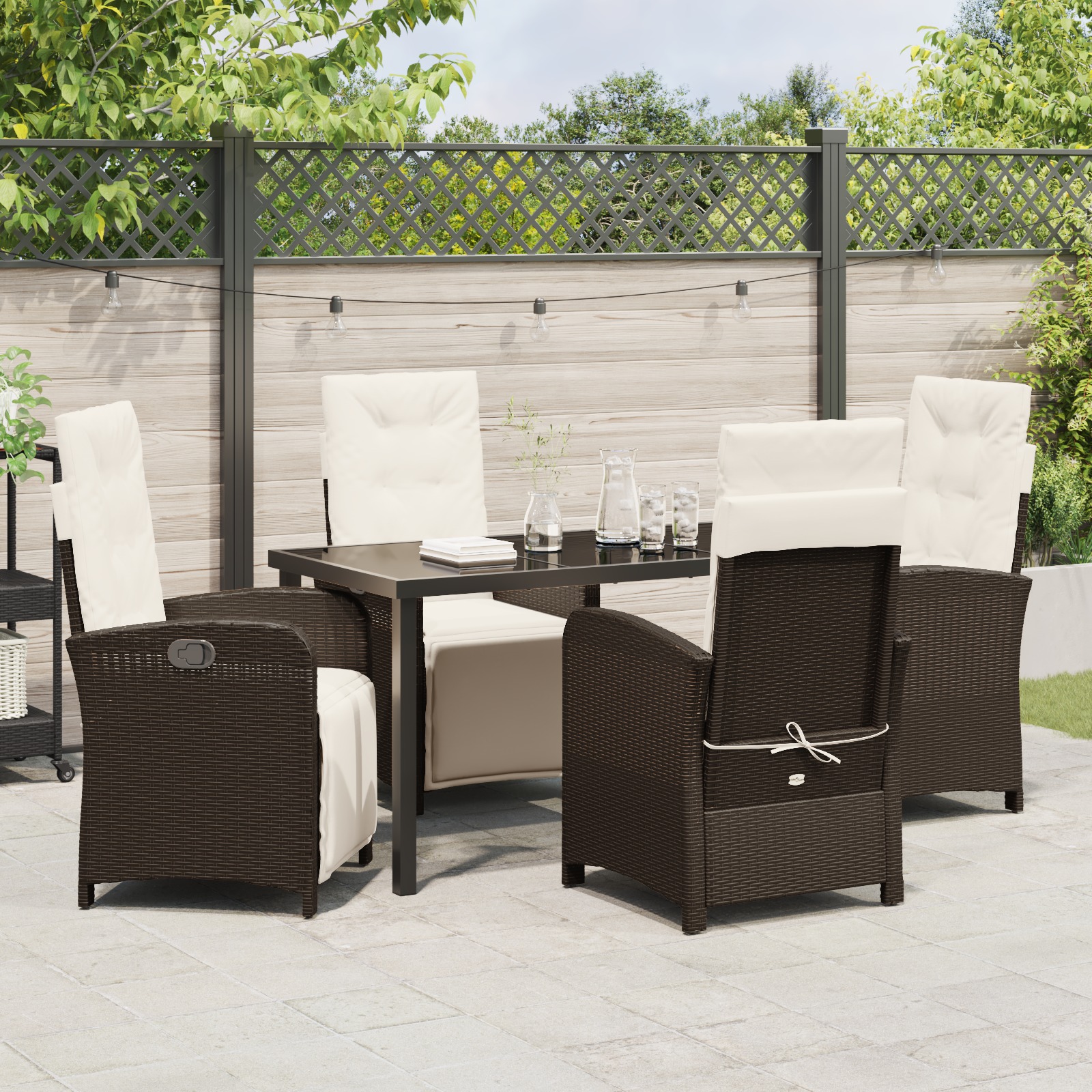 - Utilizări Versatile: Acest set e făcut pentru viața afară, transformând grădina sau terasa ta într-un spațiu de dining primitor. E ideal de la brunch-uri relaxate la cine sofisticate sub stele.