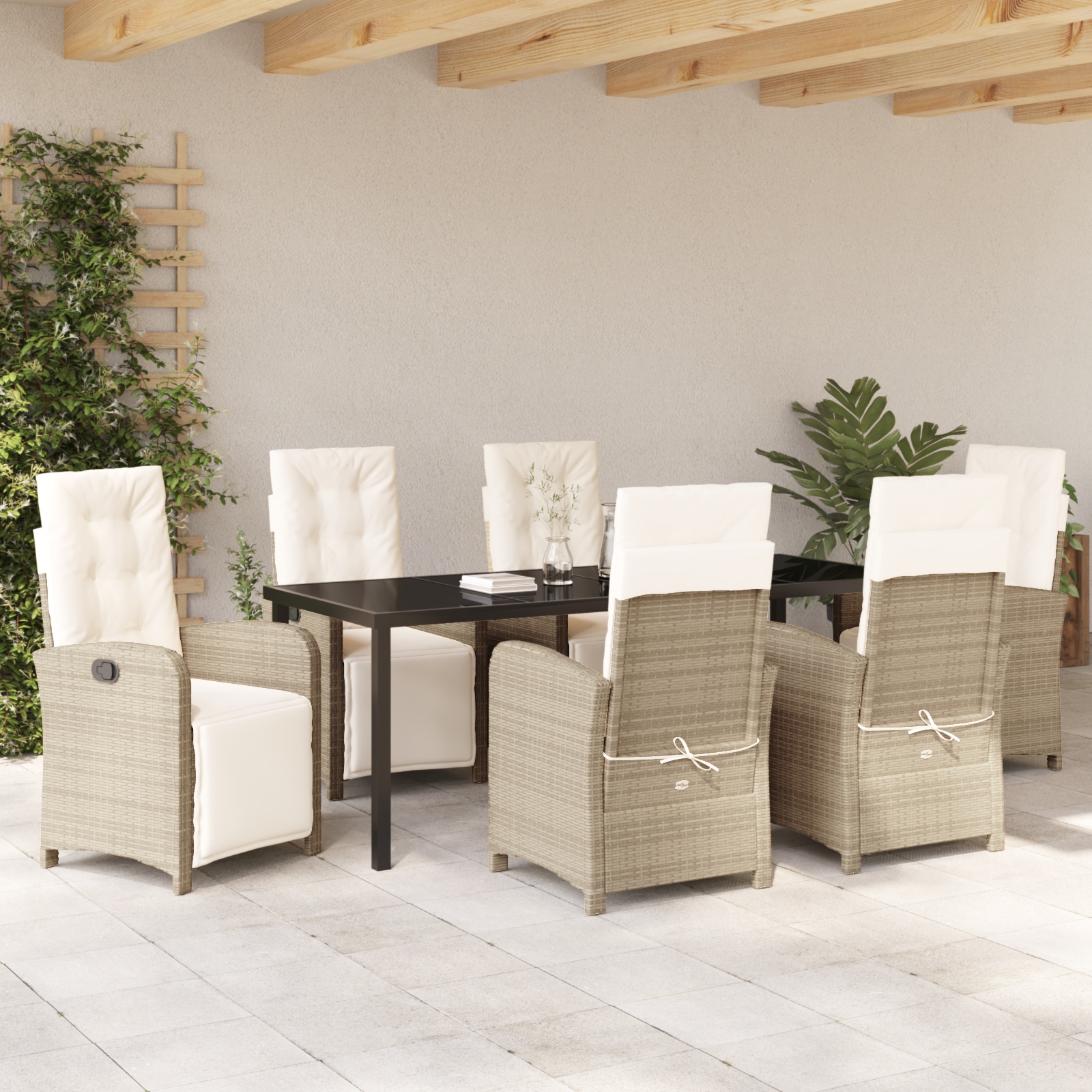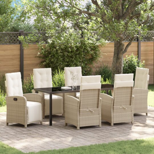 Set mese grădină 7 piese și perne bej din ratan sintetic