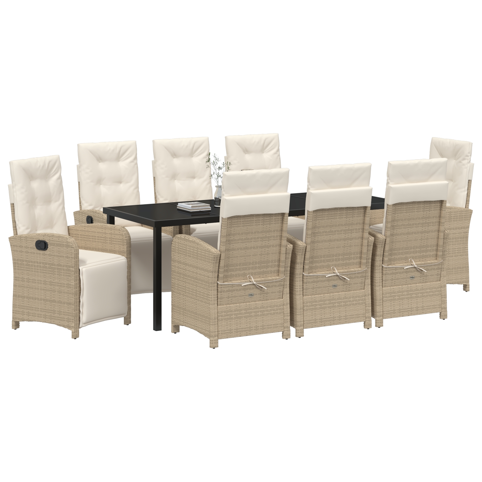 Set mese grădină 9 piese cu perne bej din ratan sintetic
