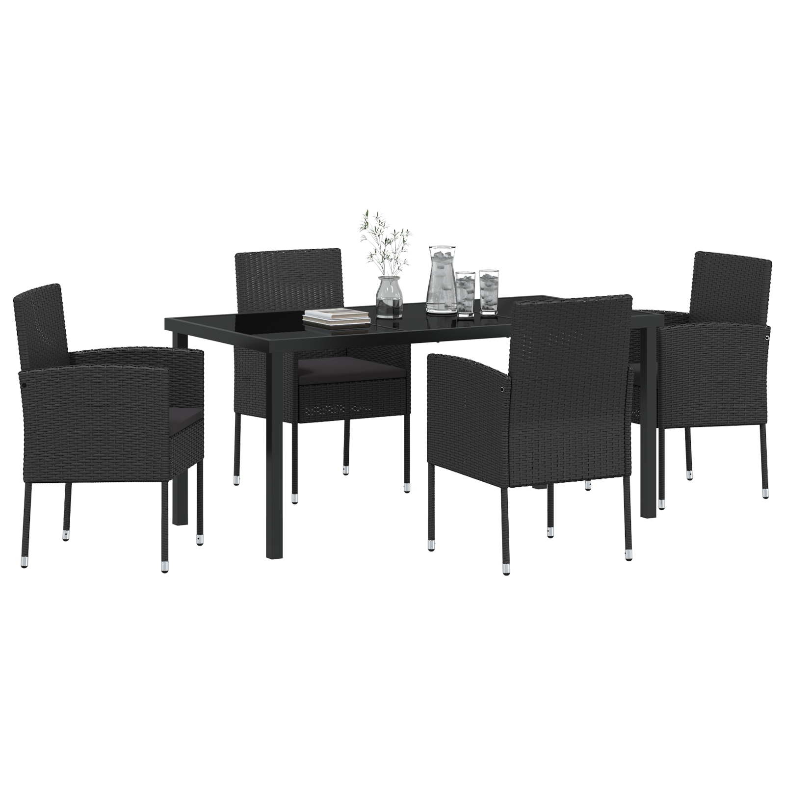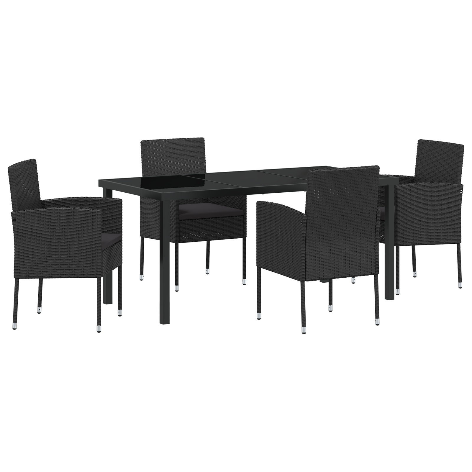 Set de masă pentru grădină cu pernă 5 pcs Negru Rattan poli