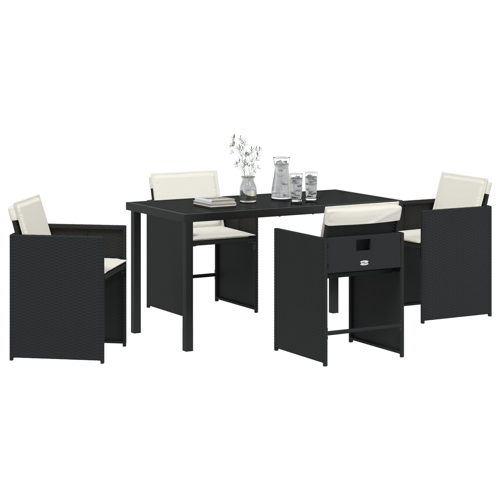 Set de masă pentru grădină cu pernă 5 pcs Negru Rattan poli