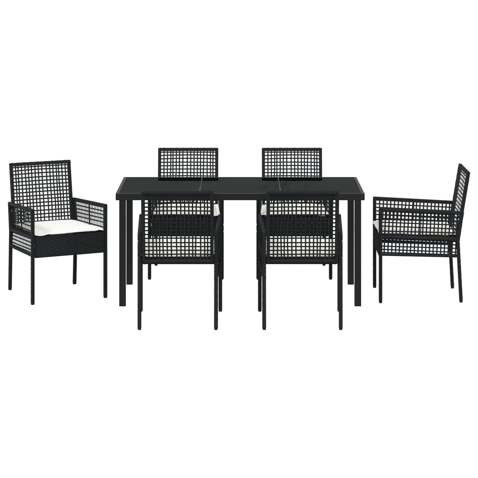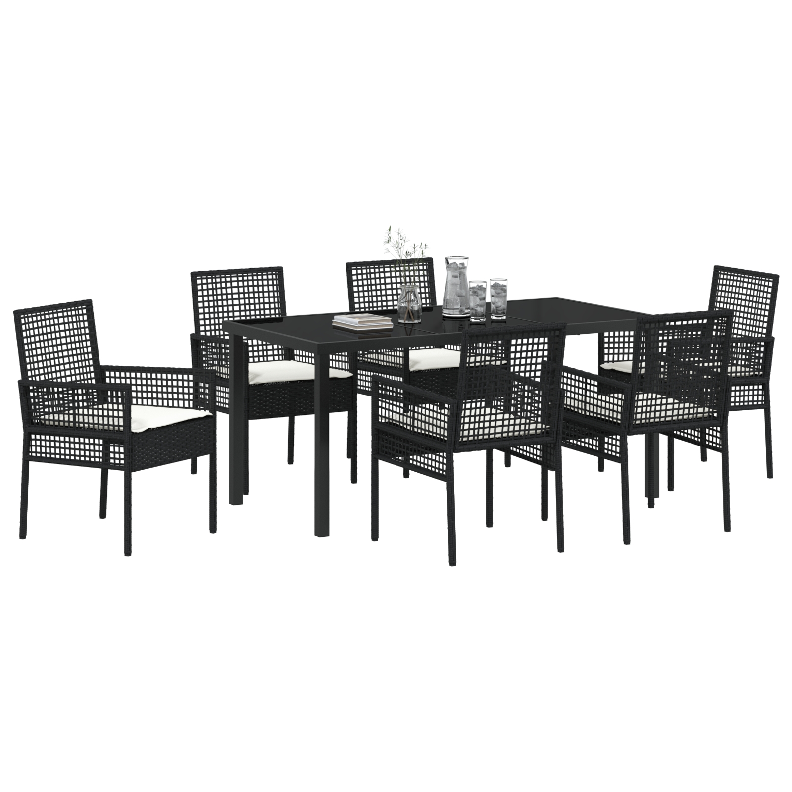 - 6 x scaune de grădină, 1 x masă de grădină, 6 x perne pentru șezut