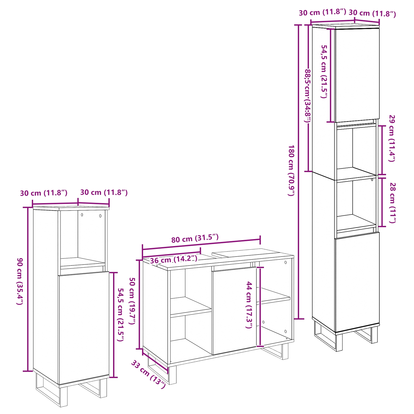 Set de mobilier pentru baie cu ușă 3 pcs Maro 30 x 30 x 180 cm