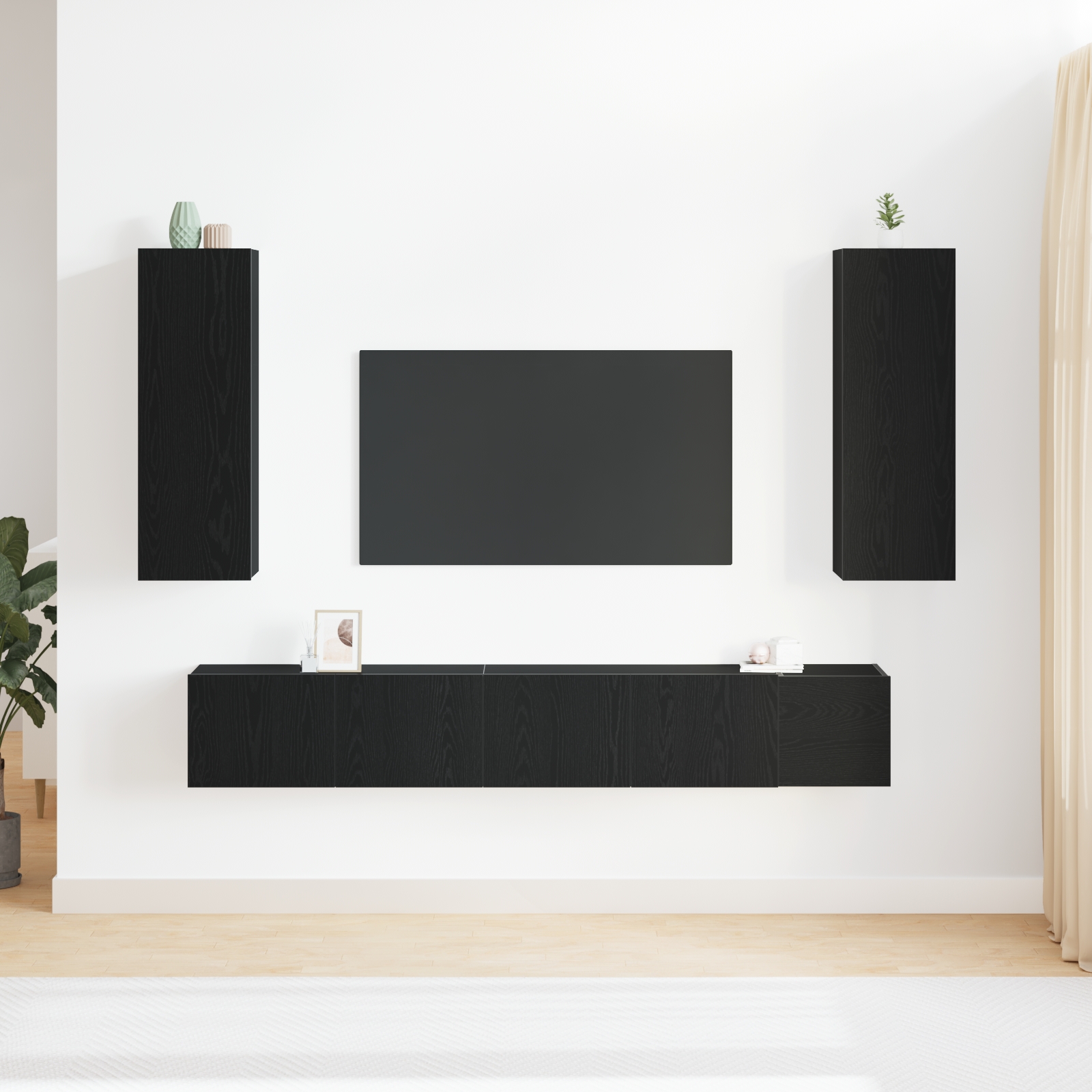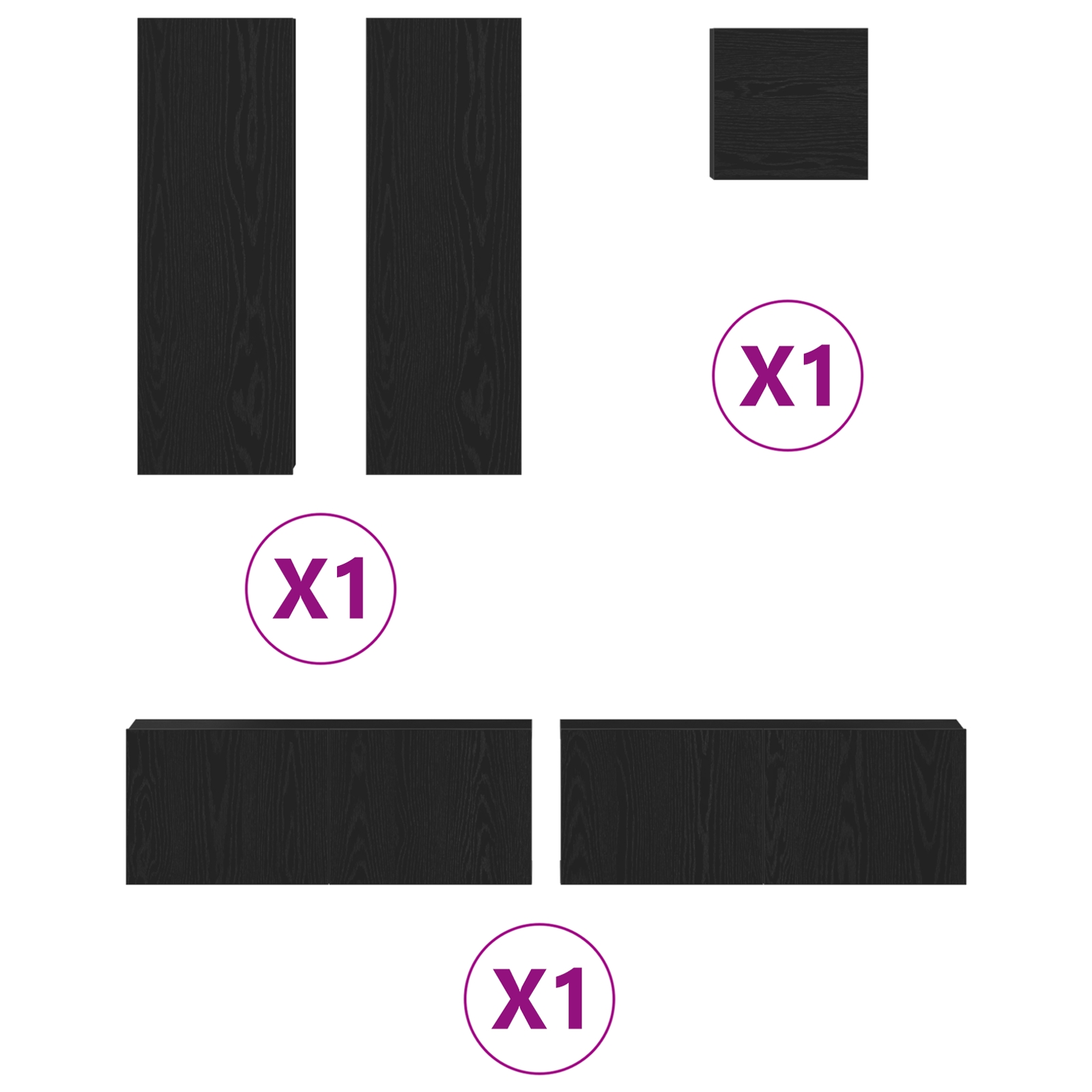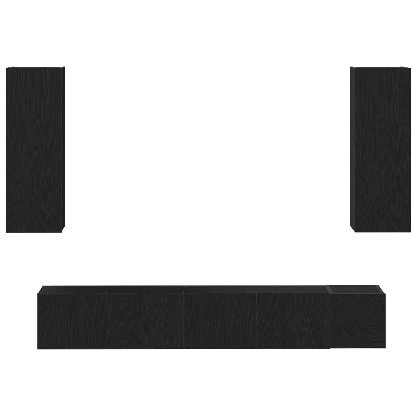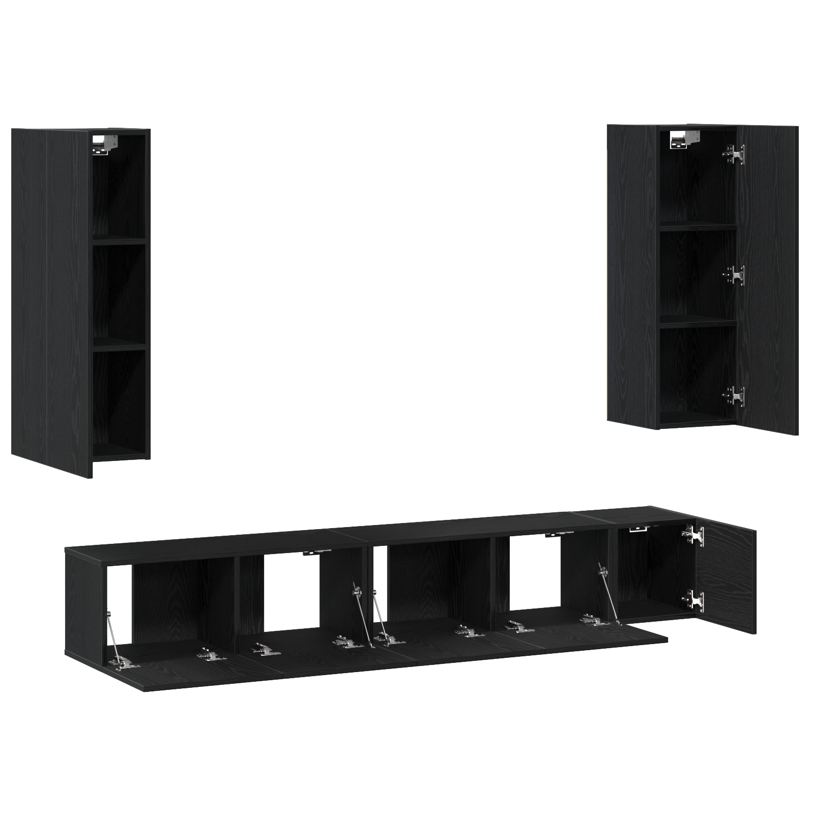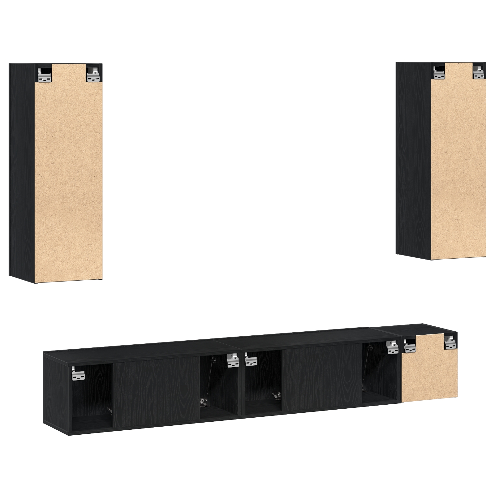 Set mobilă TV în 5 piese din lemn prelucrat de stejar negru