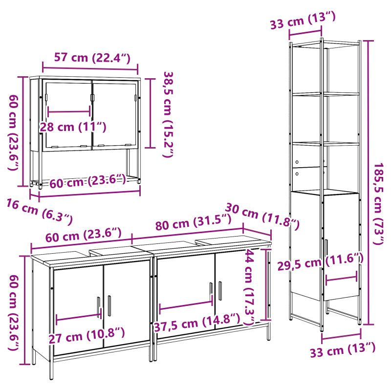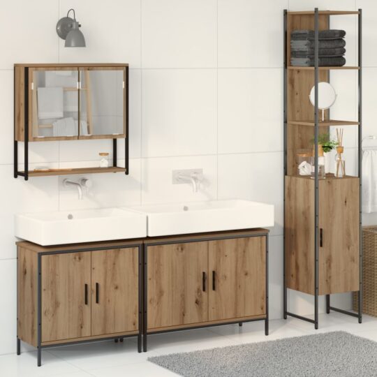 Fii primul care scrii o recenzie pentru „Set mobilier baie 4 Piese Stejar lucrat Lemn prelucrat”