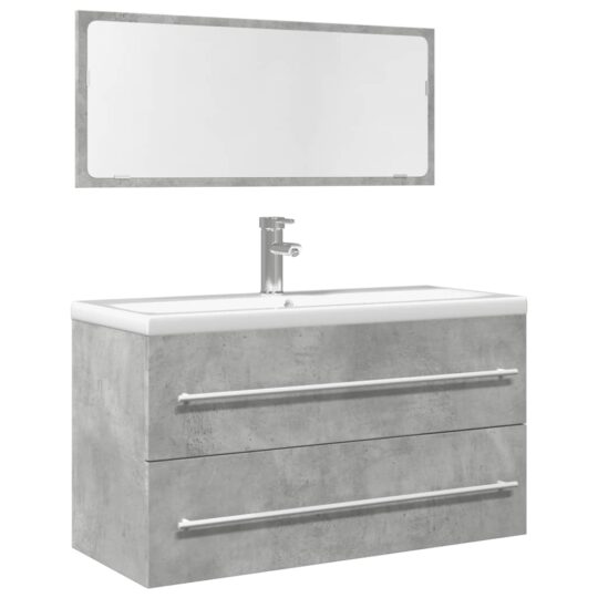 Set mobilier de baie, 2 piese, gri beton, lemn compozit