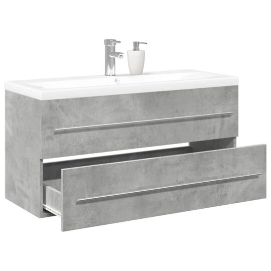 Set mobilier de baie, 2 piese, gri beton, lemn compozit