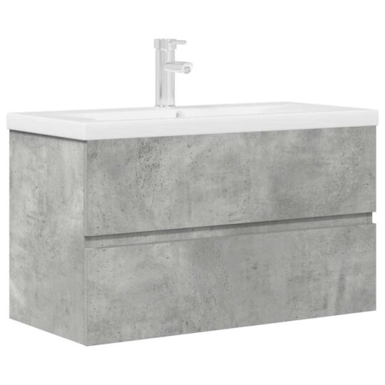 Set mobilier de baie, 2 piese, gri beton, lemn compozit