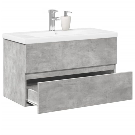 Set mobilier de baie, 2 piese, gri beton, lemn compozit