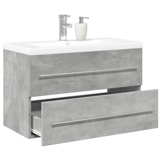Set mobilier de baie, 2 piese, gri beton, lemn compozit