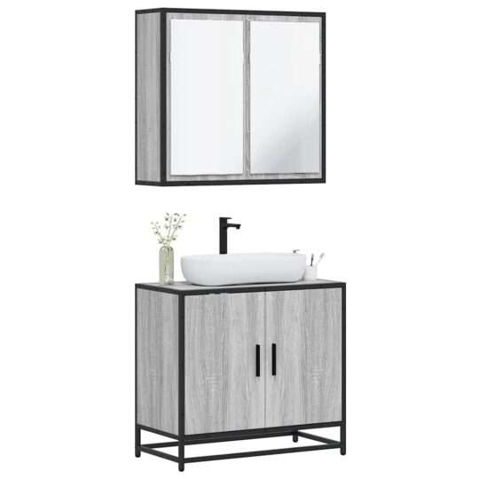 Set mobilier de baie, 2 piese, gri sonoma, lemn prelucrat