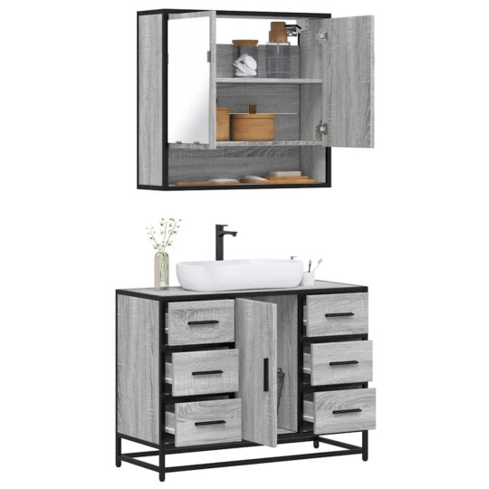 Set mobilier de baie, 2 piese, gri sonoma, lemn prelucrat