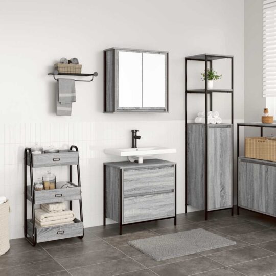 Set mobilier de baie, 2 piese, gri sonoma, lemn prelucrat