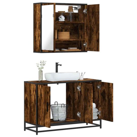 Set mobilier de baie, 2 piese, stejar fumuriu, lemn prelucrat
