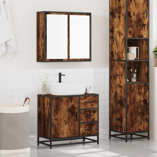 Set mobilier de baie, 2 piese, stejar fumuriu, lemn prelucrat