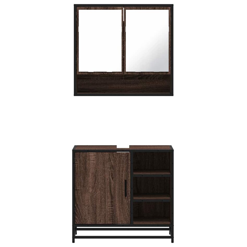 Set mobilier de baie, 2 piese, stejar maro, lemn prelucrat