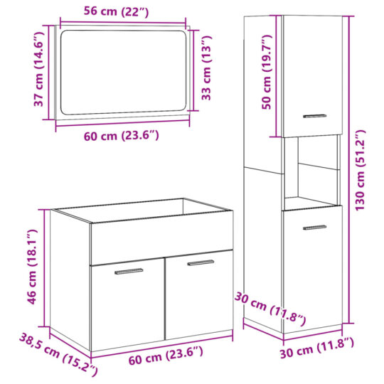 Fii primul care scrii o recenzie pentru „Set mobilier de baie, 3 piese, gri beton, lemn compozit”