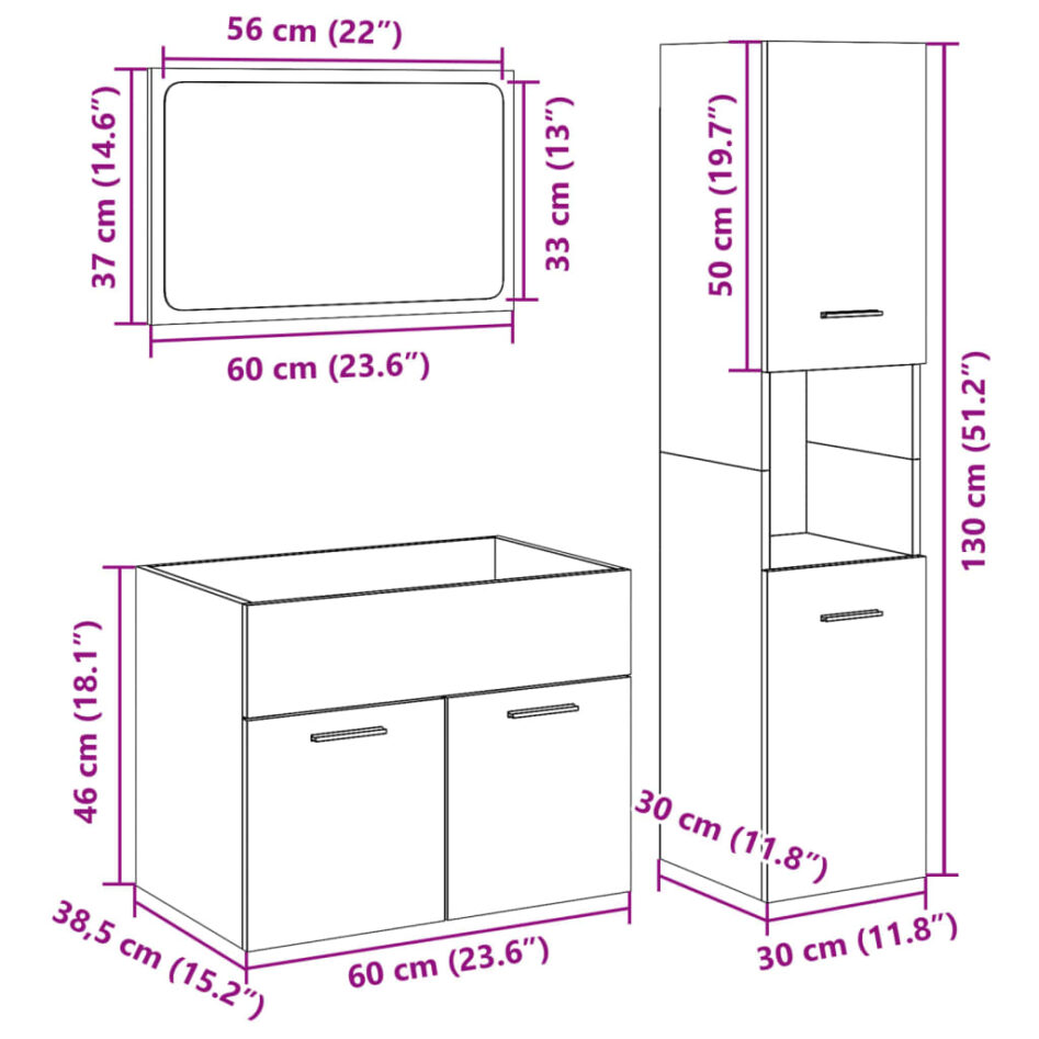 Set mobilier de baie, 3 piese, gri beton, lemn compozit