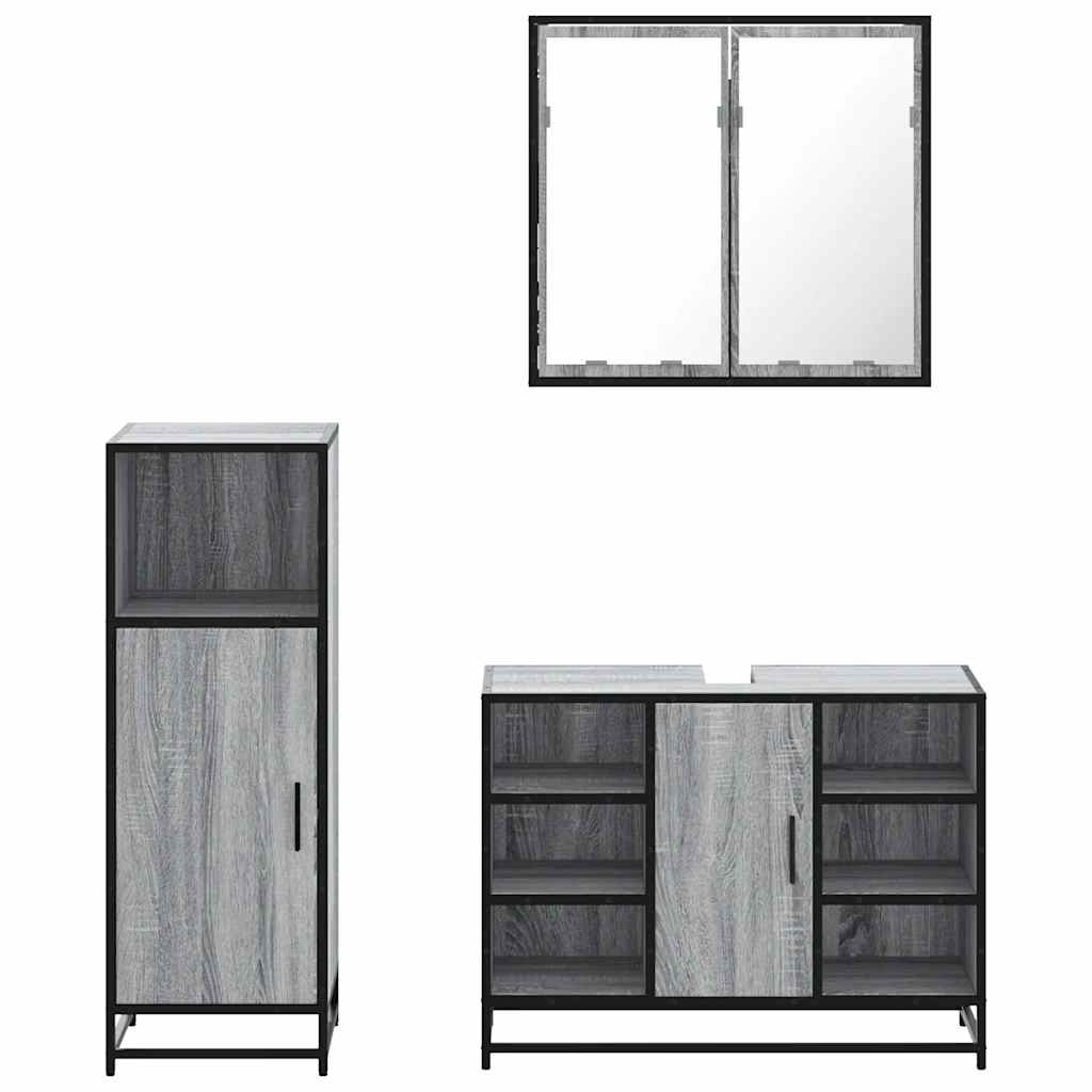 Set mobilier de baie, 3 piese, gri sonoma, lemn prelucrat