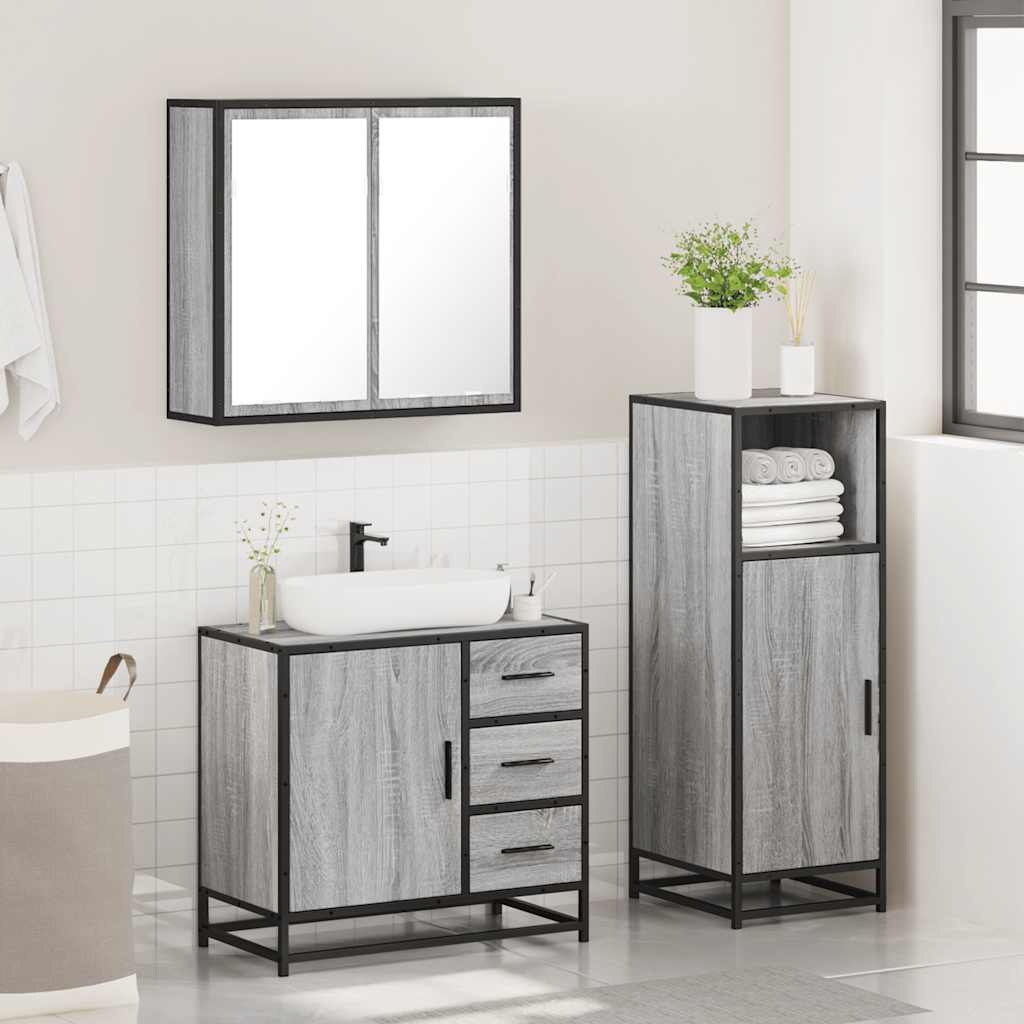 Set mobilier de baie, 3 piese, gri sonoma, lemn prelucrat