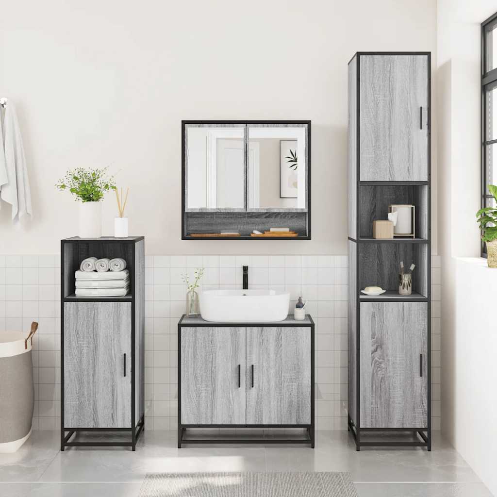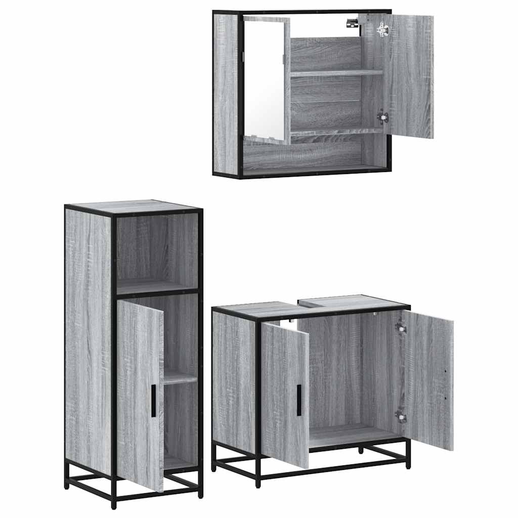 Set mobilier de baie, 3 piese, gri sonoma, lemn prelucrat