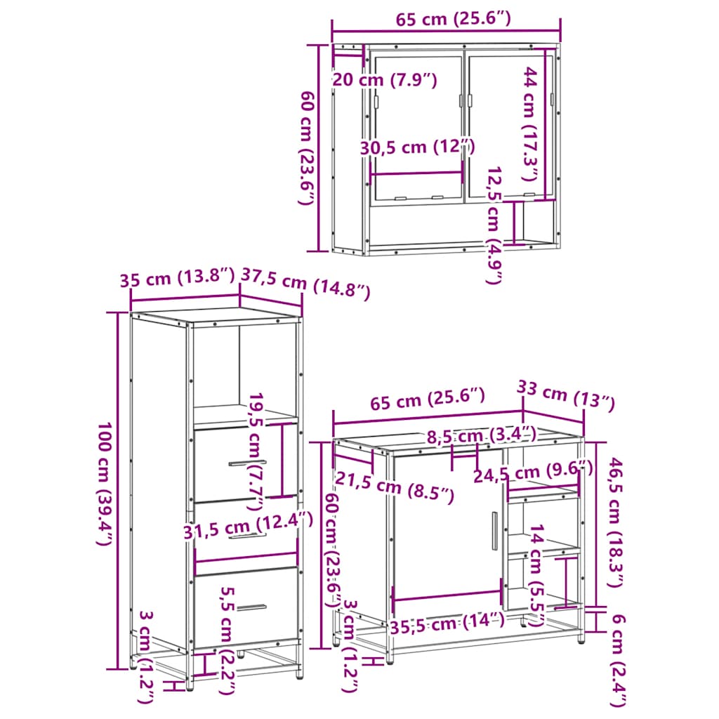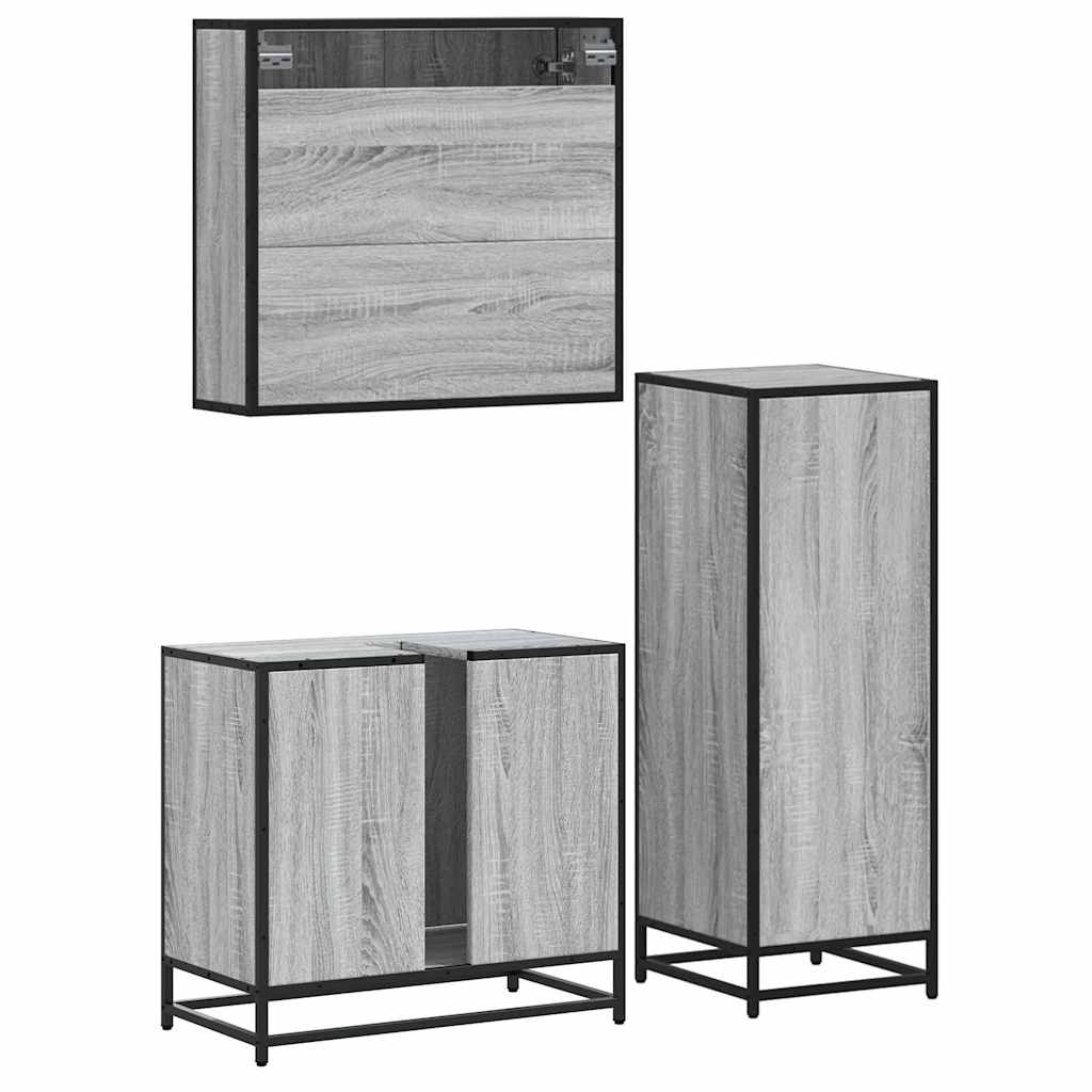 Set mobilier de baie, 3 piese, gri sonoma, lemn prelucrat