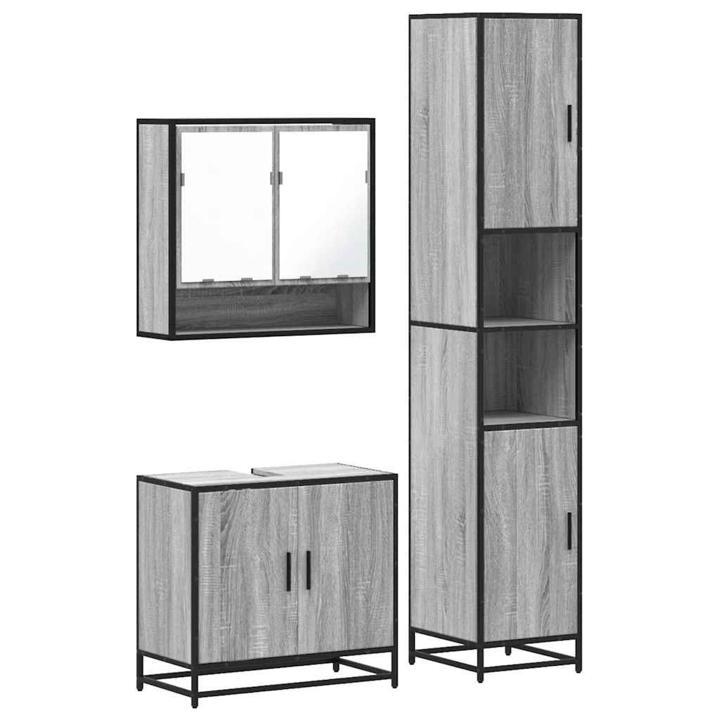 Set mobilier de baie, 3 piese, gri sonoma, lemn prelucrat
