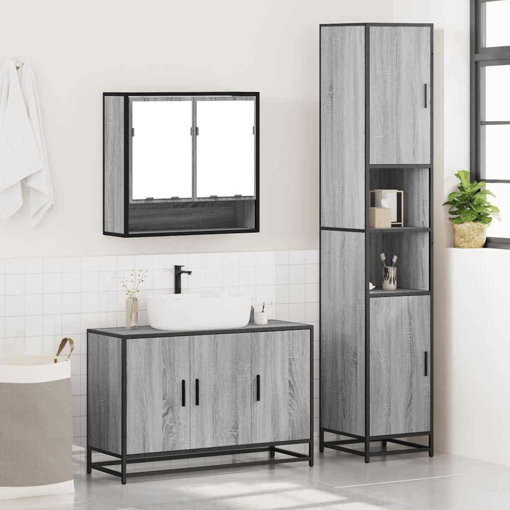 Set mobilier de baie, 3 piese, gri sonoma, lemn prelucrat