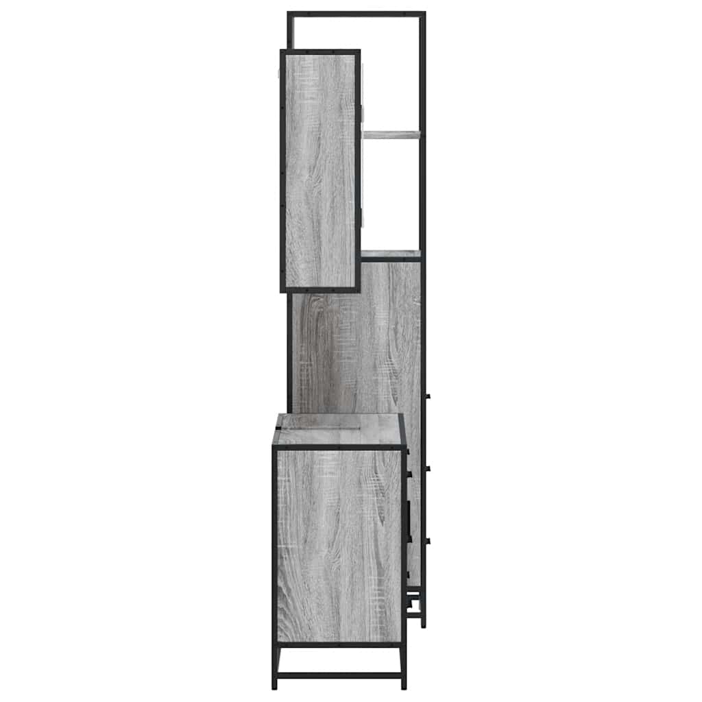 Set mobilier de baie, 3 piese, gri sonoma, lemn prelucrat
