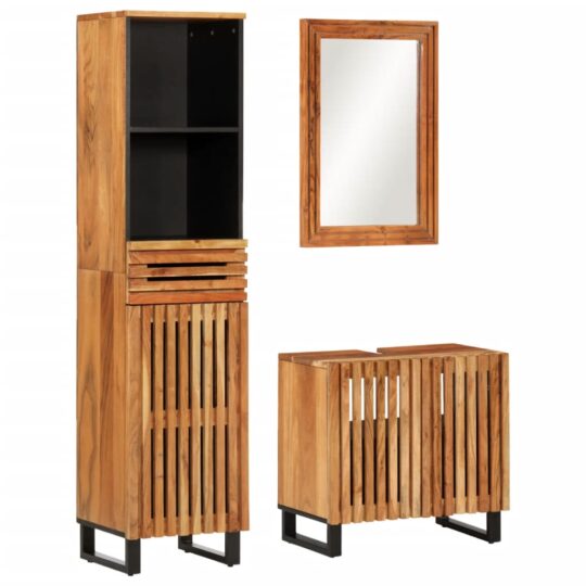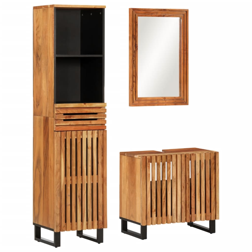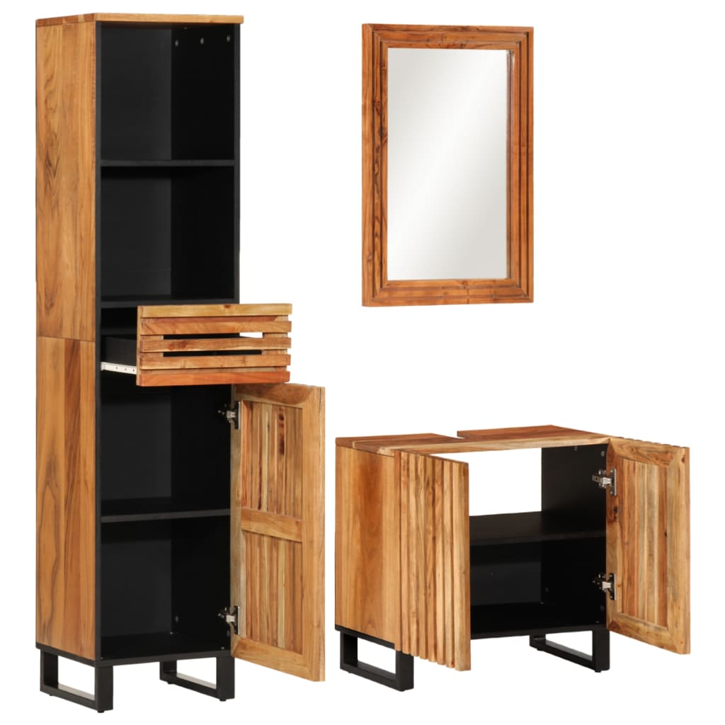 Set mobilier de baie, 3 piese, lemn masiv de acacia