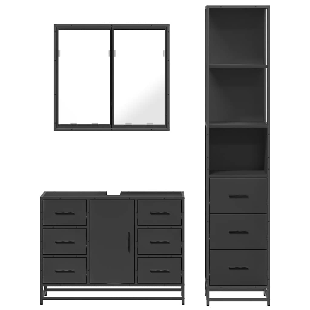 Set mobilier de baie, 3 piese, negru, lemn compozit