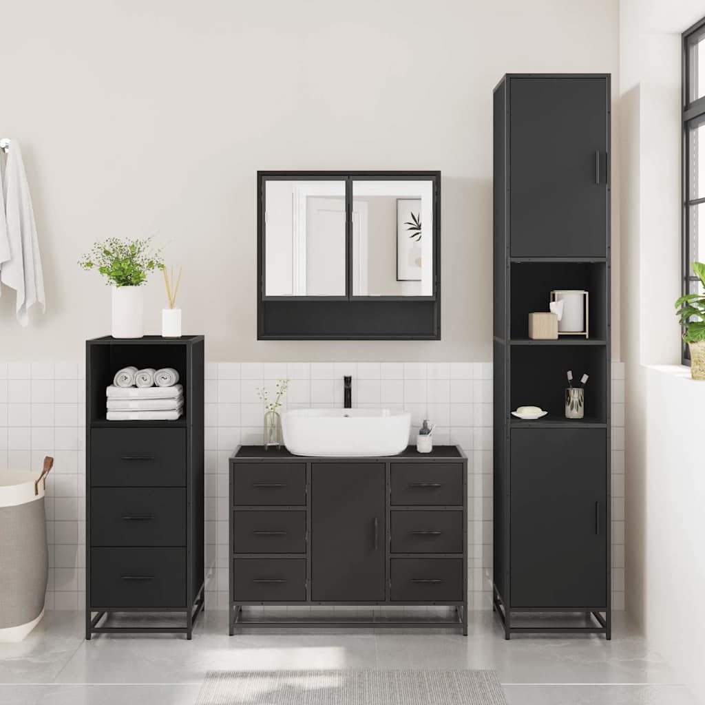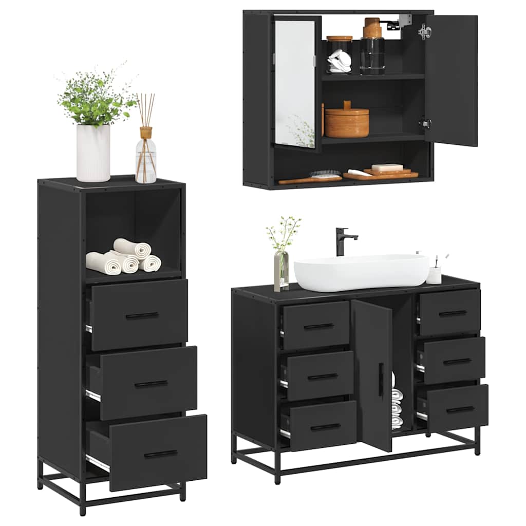 Set mobilier de baie, 3 piese, negru, lemn compozit