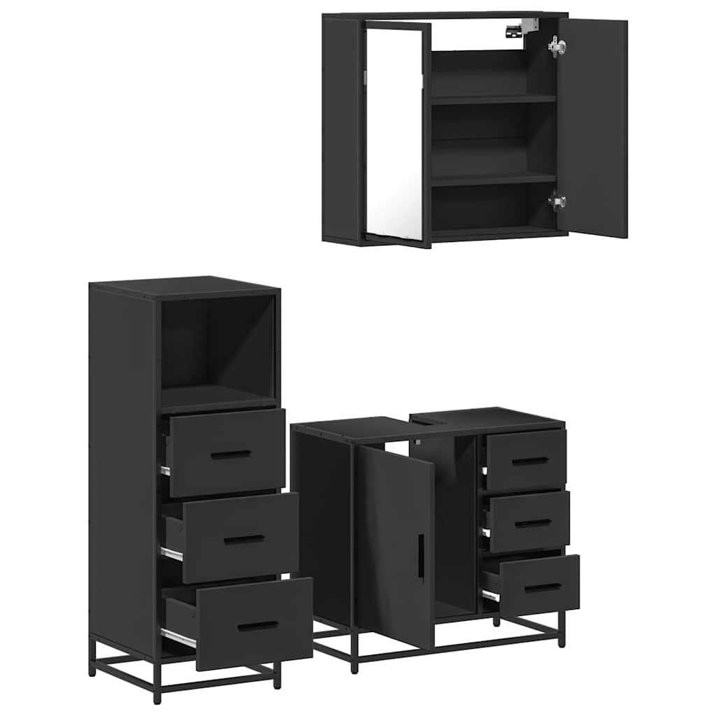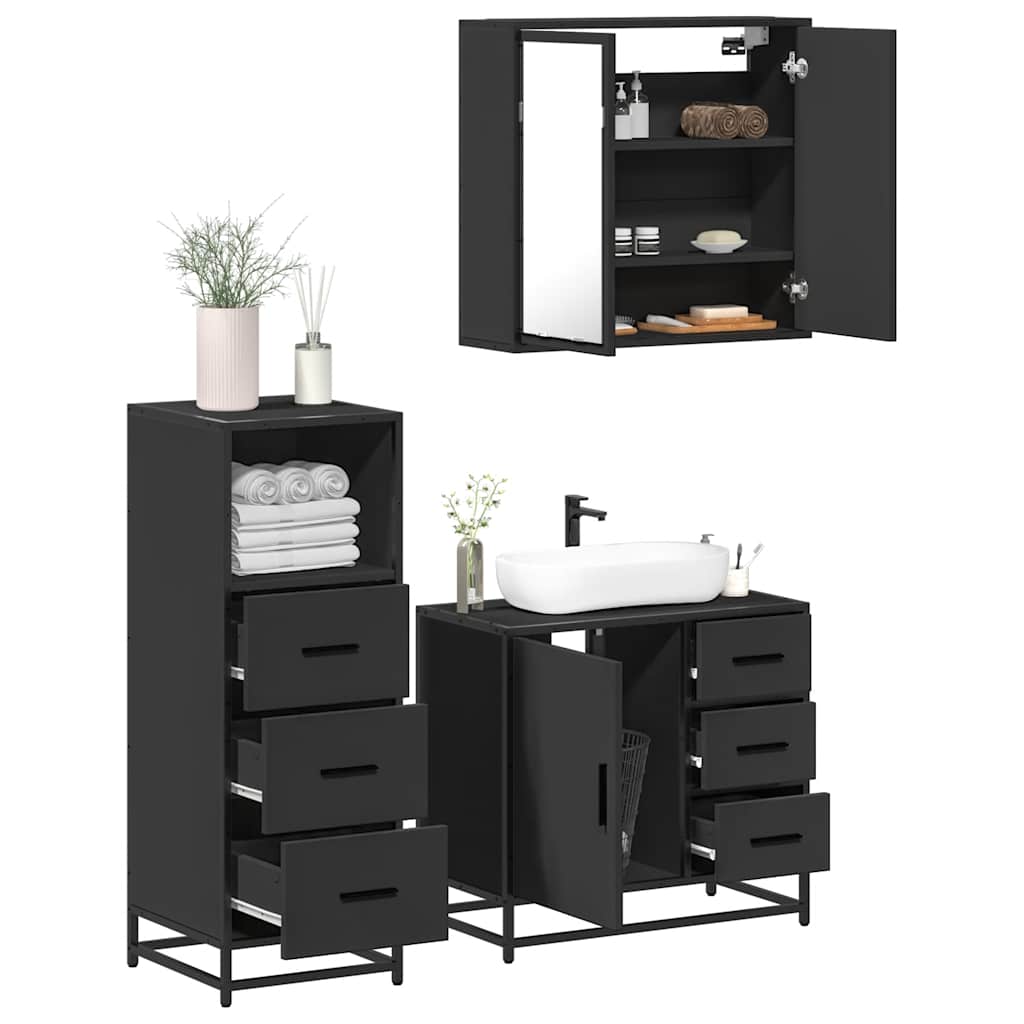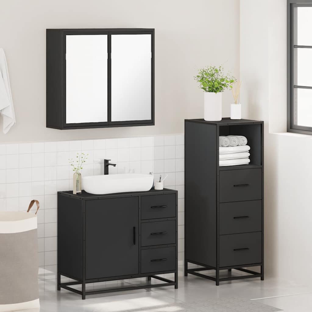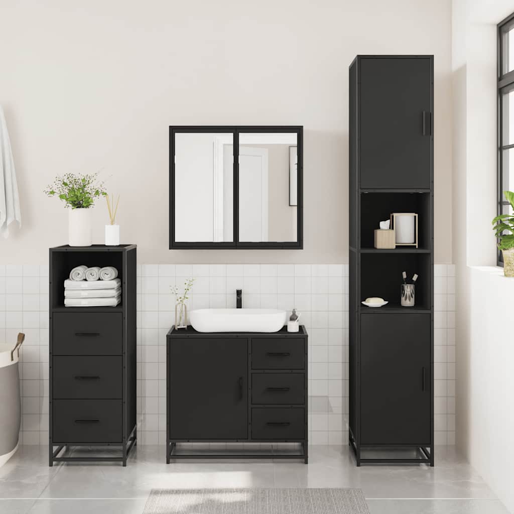 Set mobilier de baie, 3 piese, negru, lemn compozit